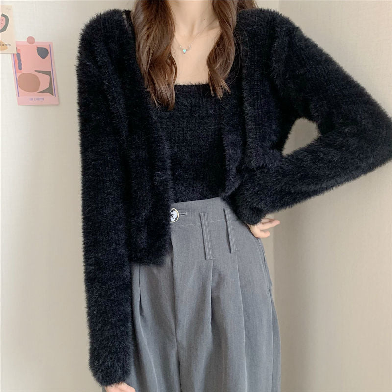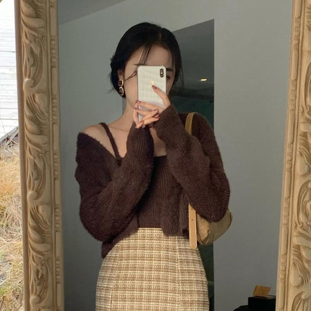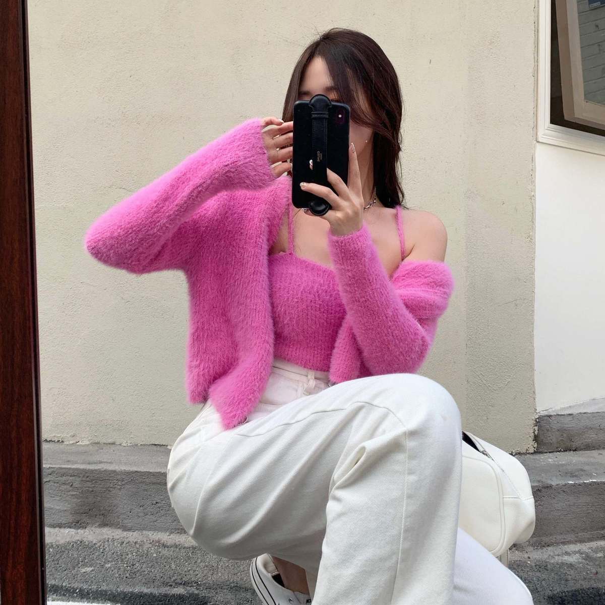 Turn heads effortlessly with our Knitted Sweater Two-Piece Set, a chic and cozy choice for modern women in Nepal! ✨ Designed for style-conscious students and trendsetters alike, this set includes a soft, imitation mink velvet small cardigan and a strapless top, perfectly blending comfort with celebrity-inspired fashion. Ideal for layering or wearing on its own, it’s a must-have for casual outings, campus life, or evening hangouts with friends. 🌸💖