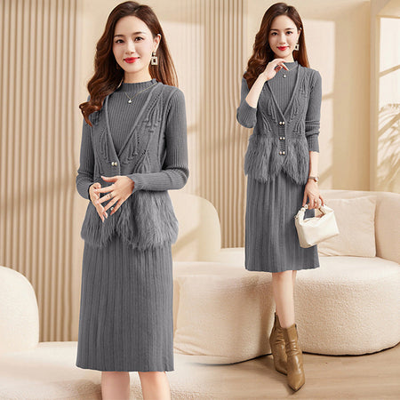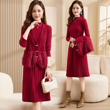 Made from premium soft knit fabric, the dress feels warm and gentle against the skin while providing a sleek, flattering fit. Its vest-style layered design adds a modern and elegant touch, perfect for layering over shirts or turtlenecks. The slimming silhouette enhances your curves, making it ideal for casual outings, office wear, or semi-formal events. 🌟