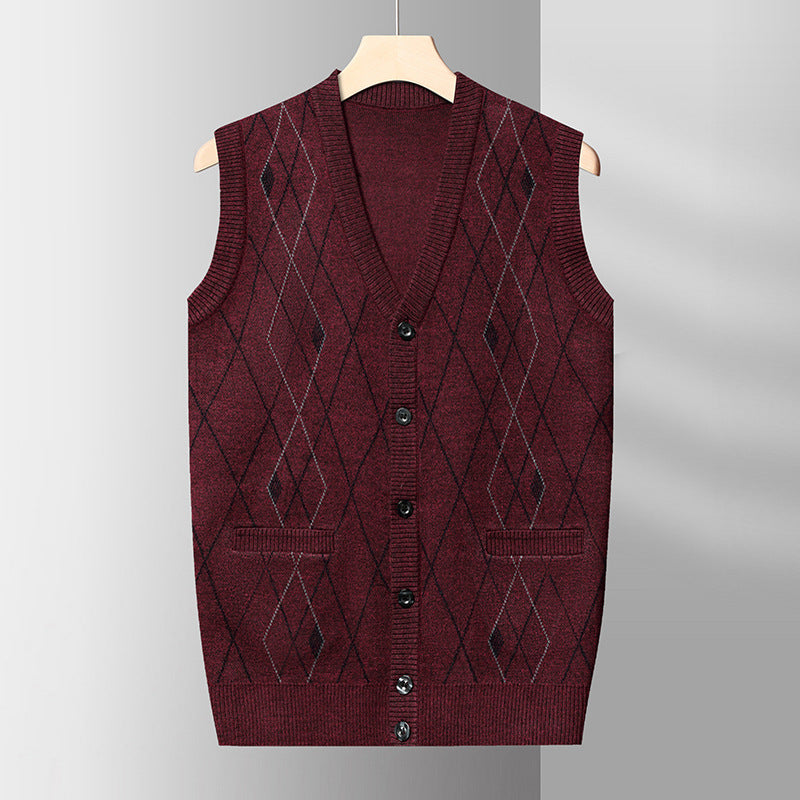 Sleeveless Sweater – 2025 Jacquard Knit Waistcoat for Men