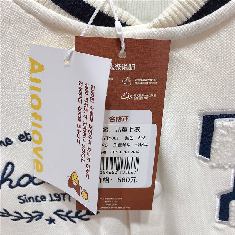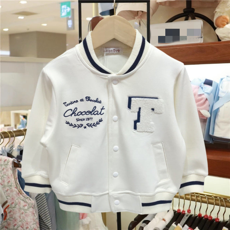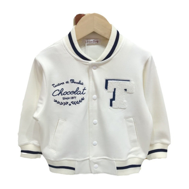 Kids’ Korean-Style White Baseball Jacket