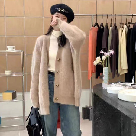 💫 Wrap yourself in softness with this imitation mink knitted cardigan. Designed with a lazy loose fit, it blends comfort with understated elegance, perfect for autumn and winter layering. Its gentle texture and cozy warmth make it your go-to outerwear for daily wear.
