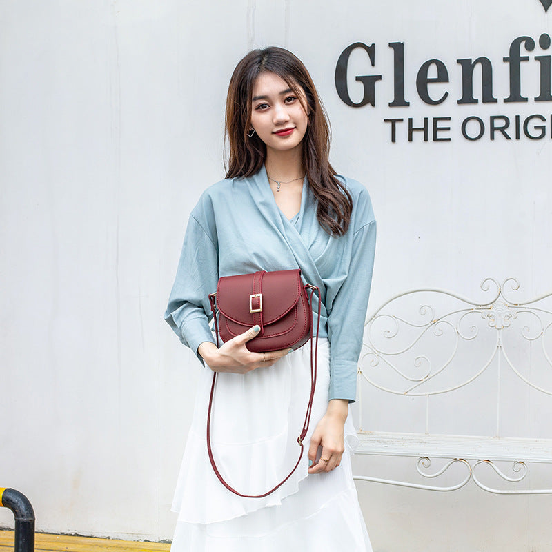 Korean Japanese Semi Saddle Belt Shoulder Crossbody Bag Lady