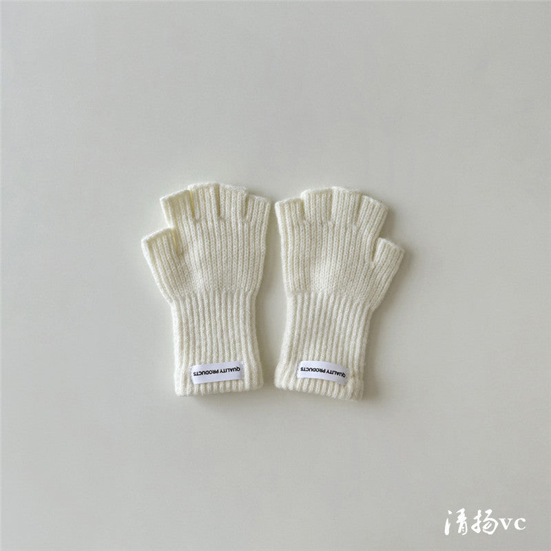 Korean Kids Half-Finger Wool Gloves Winter Warm 3-9 Years