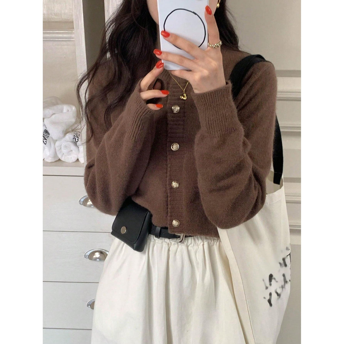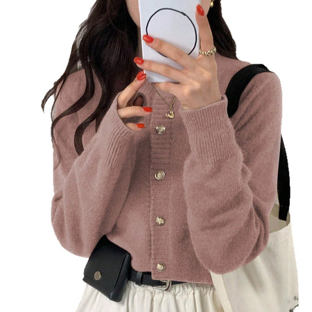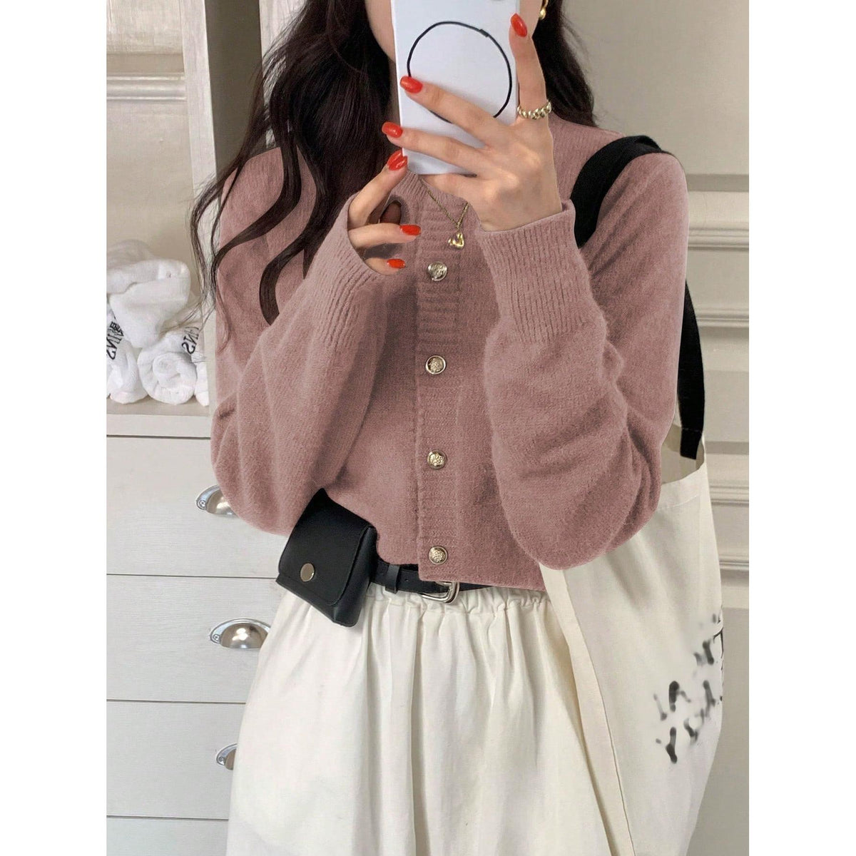 β¨ Add a touch of Korean niche chic to your wardrobe with this pure color knitted cardigan! Designed for women who love warm, stylish, and versatile knitwear, this small jacket is perfect for layering in cooler weather.