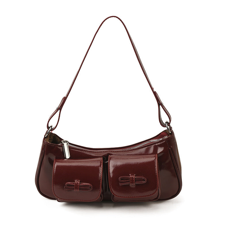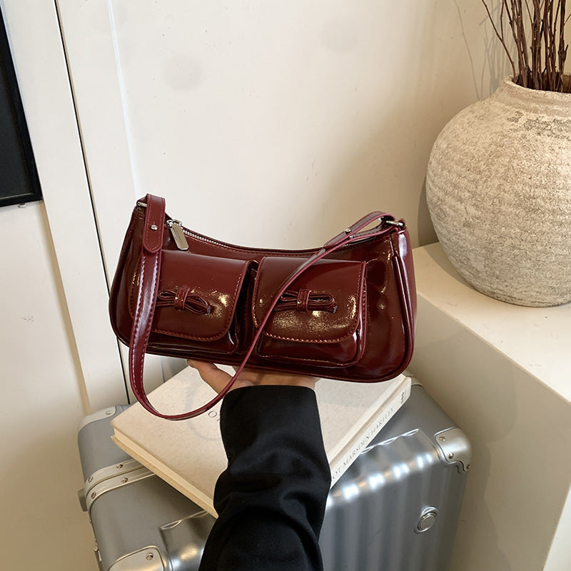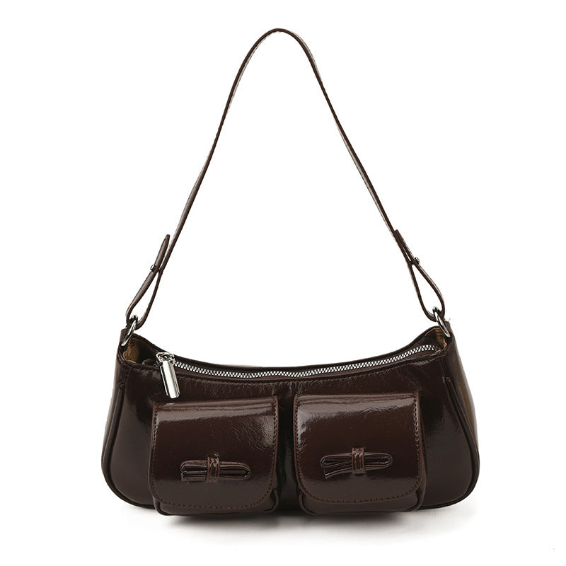Korean Retro Oil Wax Leather Baguette Shoulder Bag Women Pro