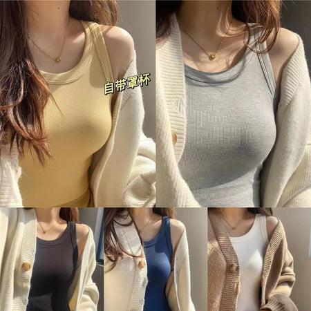 Korean Ribbed Camisole with Pads Pure Color Summer
