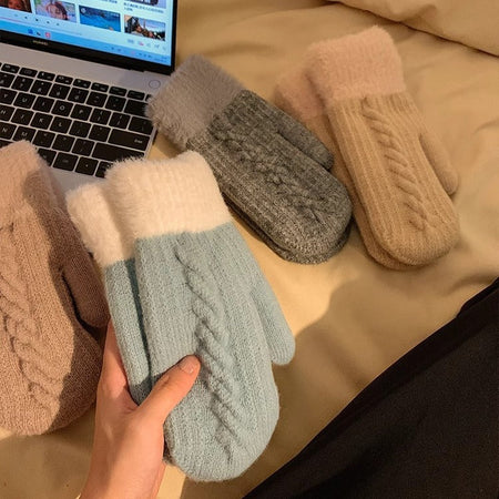 Korean-Style Couple Fleece-Lined Winter Gloves