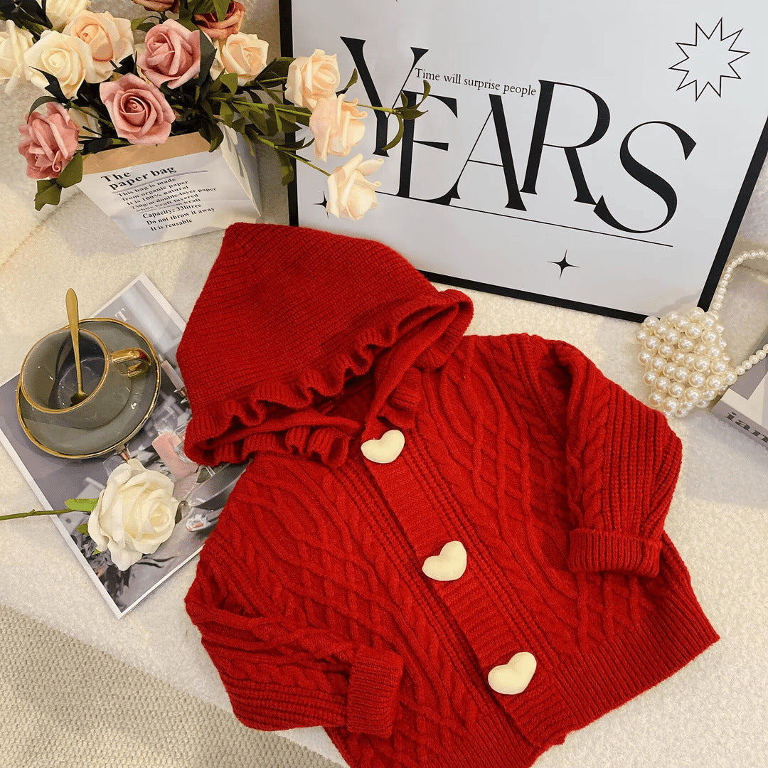 Korean Style Girls’ Sweater with Hat 2024