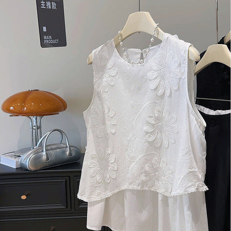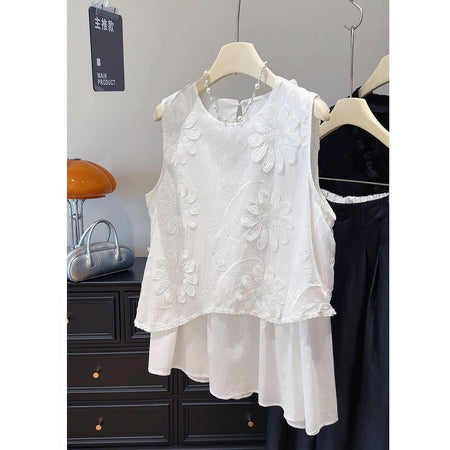 Korean-Style Heavy-Duty Three-Dimensional Floral Sleeveless Shirt β designed to combine fashion and function for a youthful, slimming look! πΈπ The standout 3D floral details add unique texture and a stylish edge, perfect for making a statement wherever you go. β¨π