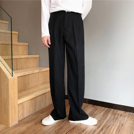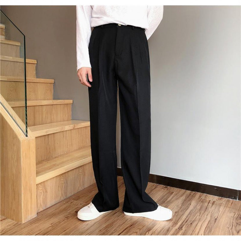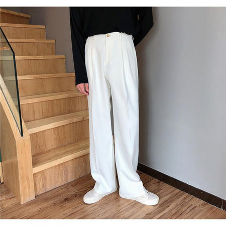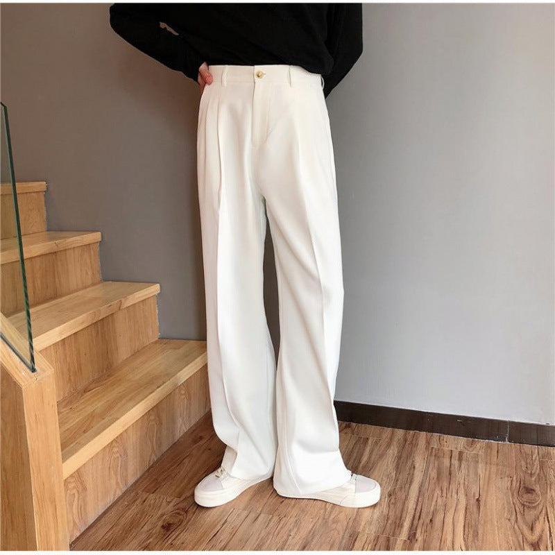 Men’s White Suit Pants – High-End Korean Wide-Leg Trousers