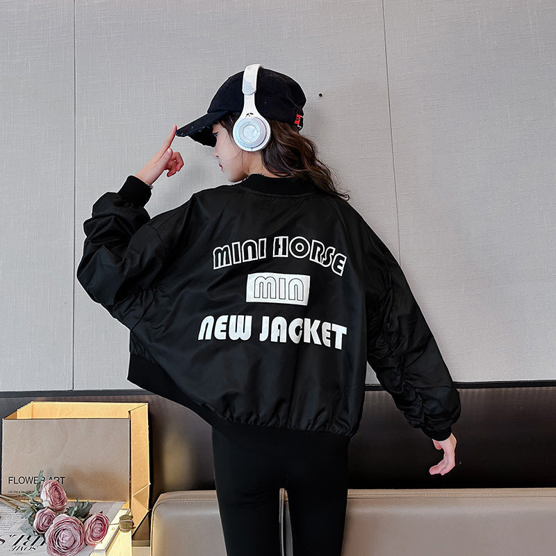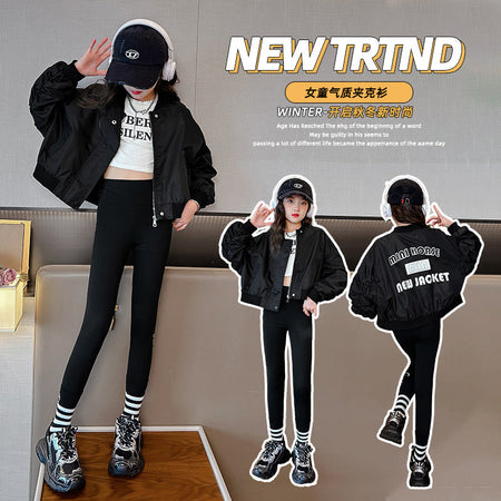 Girls’ Short Pilot Jacket – Korean Style Zip-Up