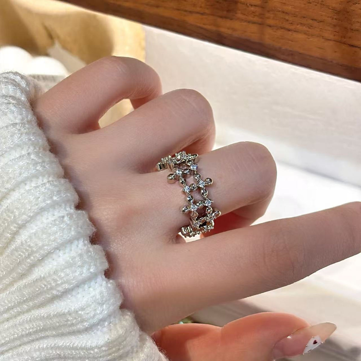 This ring combines modern elegance with minimalist charm, making it perfect for daily wear, parties, or gifting. Its mesh zircon design reflects a fashionable and sophisticated vibe, ensuring that you stand out effortlessly.