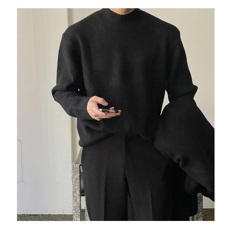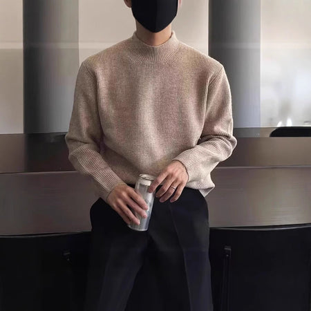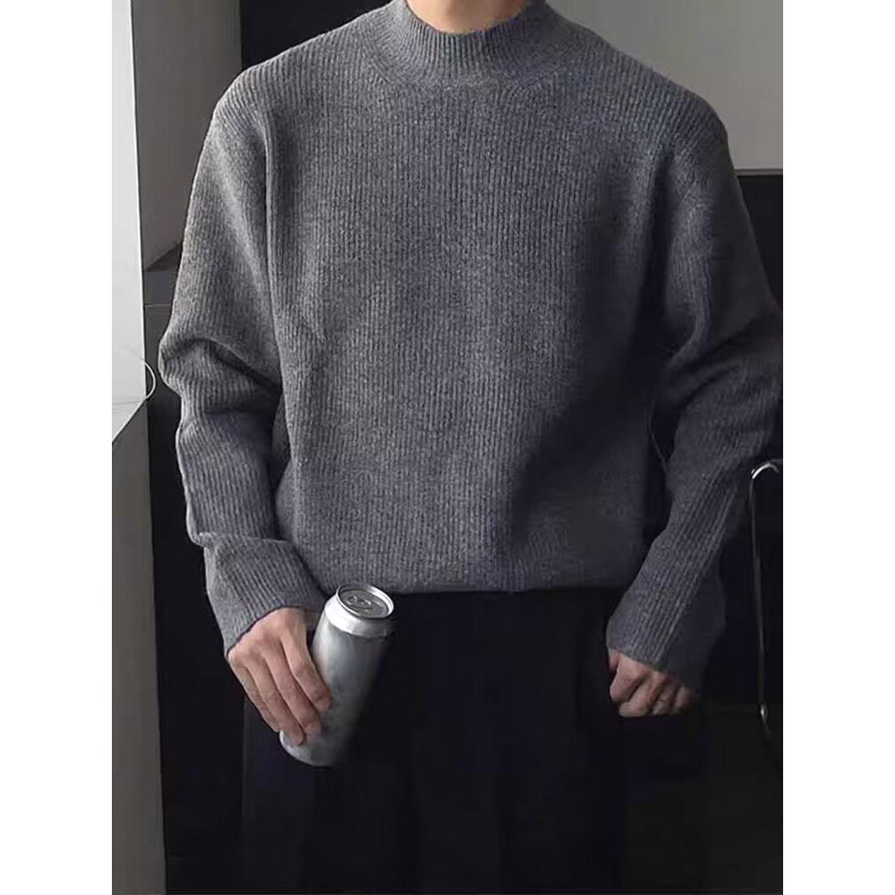 Step into sleek fashion with our Korean-style mock collar wool sweater, made with premium core-spun yarn 🧶 for warmth and durability. This slim-fit knit is perfect for autumn 🍁 and winter ❄️ layering.