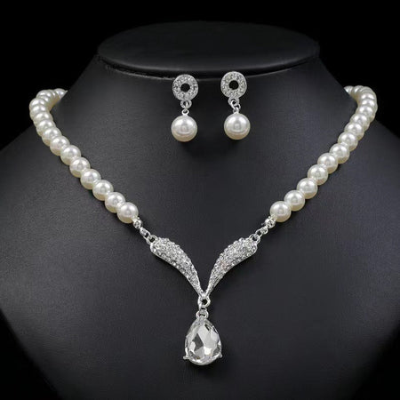 Elegant Korean Pearl Necklace & Earrings Set ā Bridal Accessory