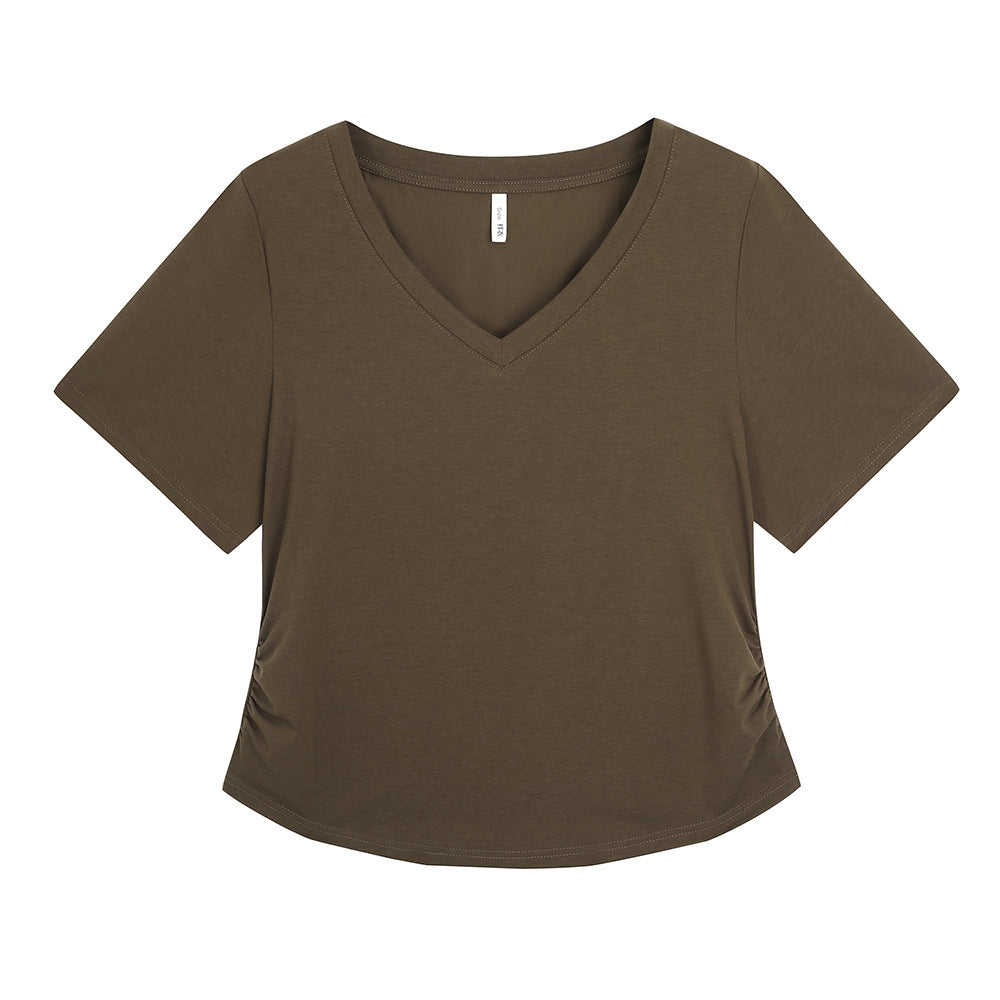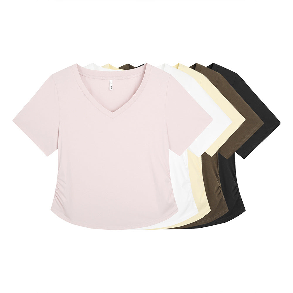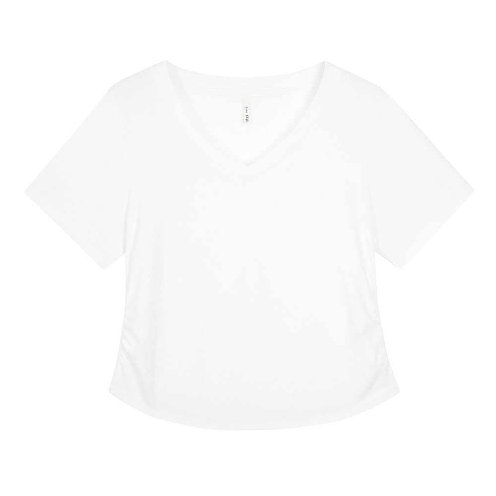 V-Neck Pleated Plus Size T-shirt โ Lyocell Slim Fit 65425