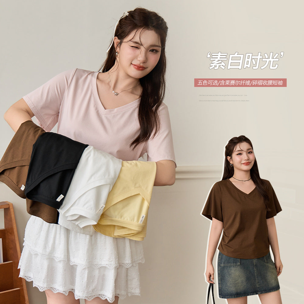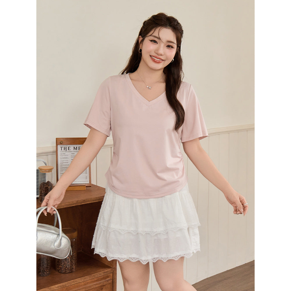 ๐ฟ Luxuriously soft, surprisingly slimming! This plus size V-neck tee is crafted from lyocell cotton blend โ gentle on skin and easy on curves. The pleated waist tucks in just right for a sleek but comfy fit.