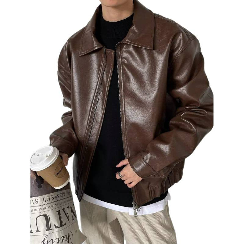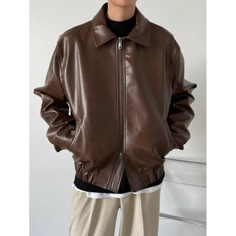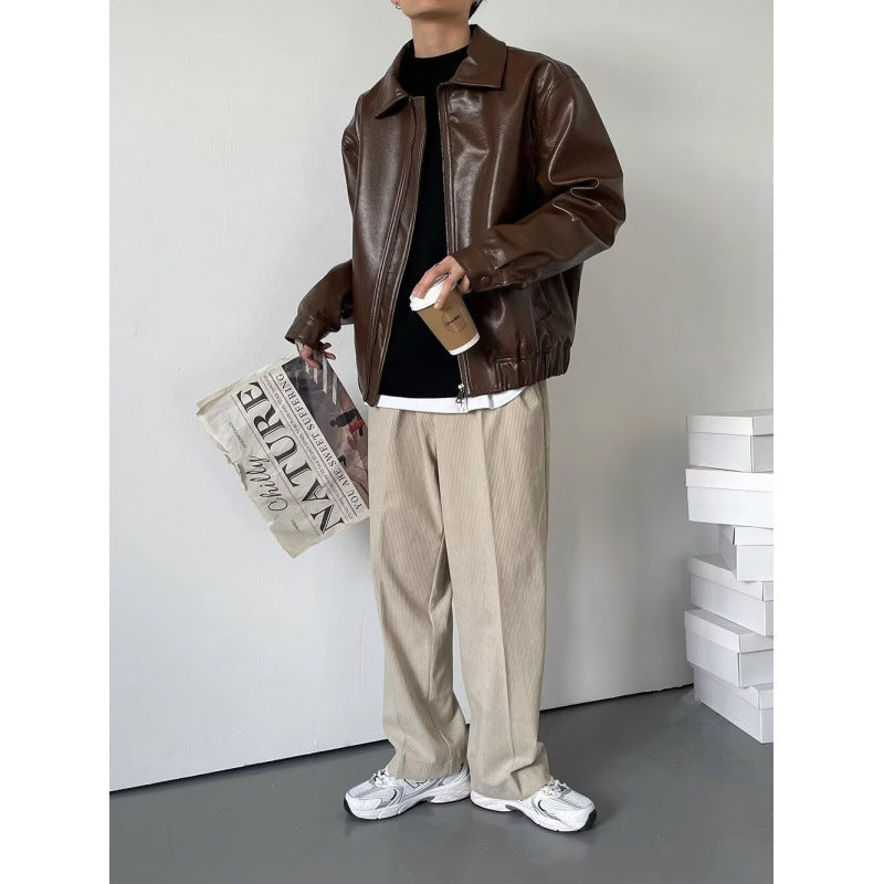 Korean Style PU Leather Jacket Men | Autumn Winter Retro