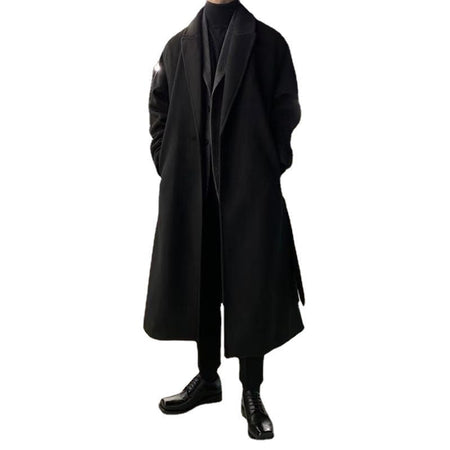 Korean Style Mid-Length Overcoat – Men’s Versatile Wool Trench
