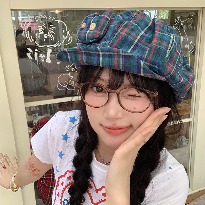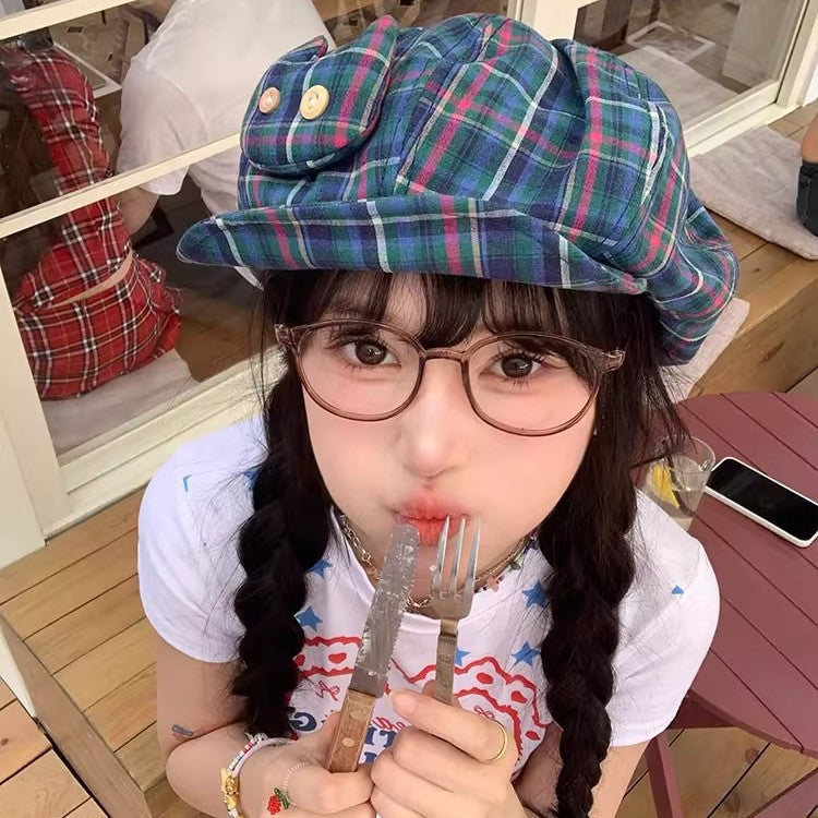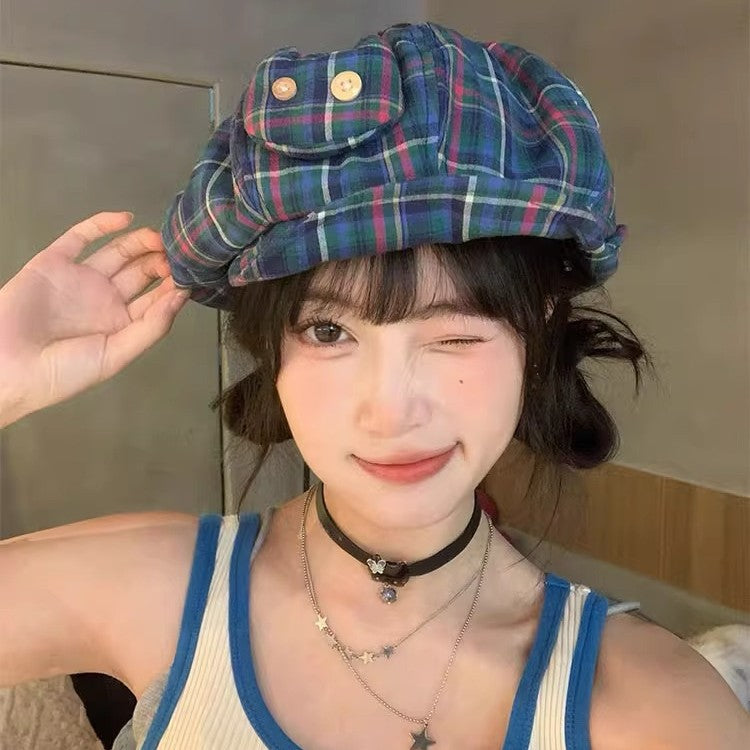 Plaid Cat Beret – Korean Retro Octagonal Hat