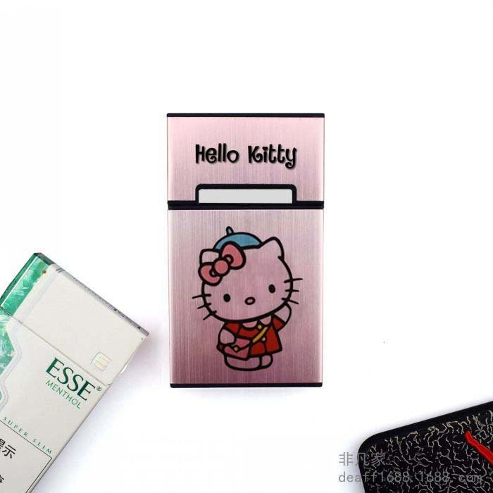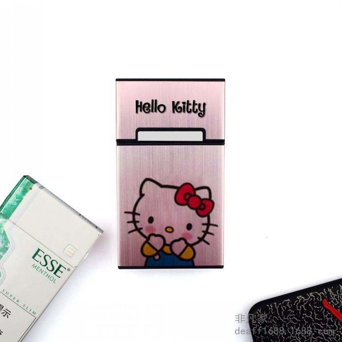 Carry your cigarettes with style using the KT Cat 20-Pack Women's Cigarette Box! 🚬✨ Crafted from durable aluminum alloy, this sleek magnetic flip box holds up to 20 cigarettes and can be customized with your favorite patterns, making it both practical and fashionable for everyday use or gifting.