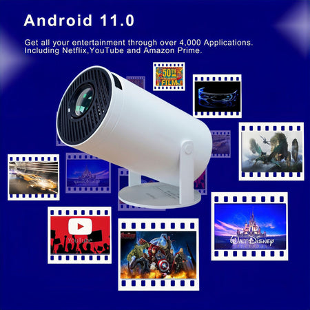 The mini portable design makes it easy to set up in bedrooms, living rooms, or outdoor spaces, while 4K resolution delivers crisp, vibrant visuals that rival larger projectors. The built-in Android OS gives access to apps and streaming platforms directly, enhancing your viewing experience without additional devices.