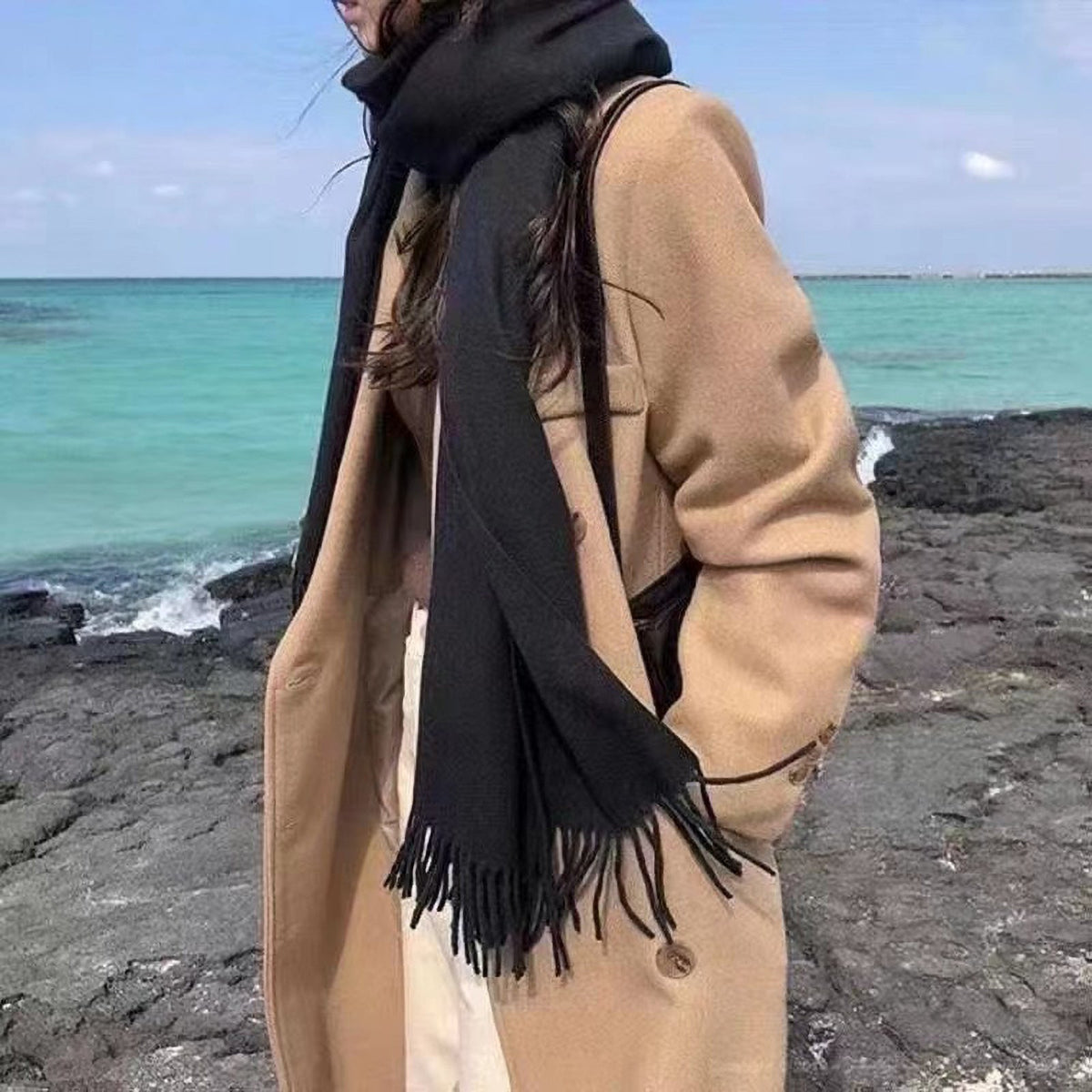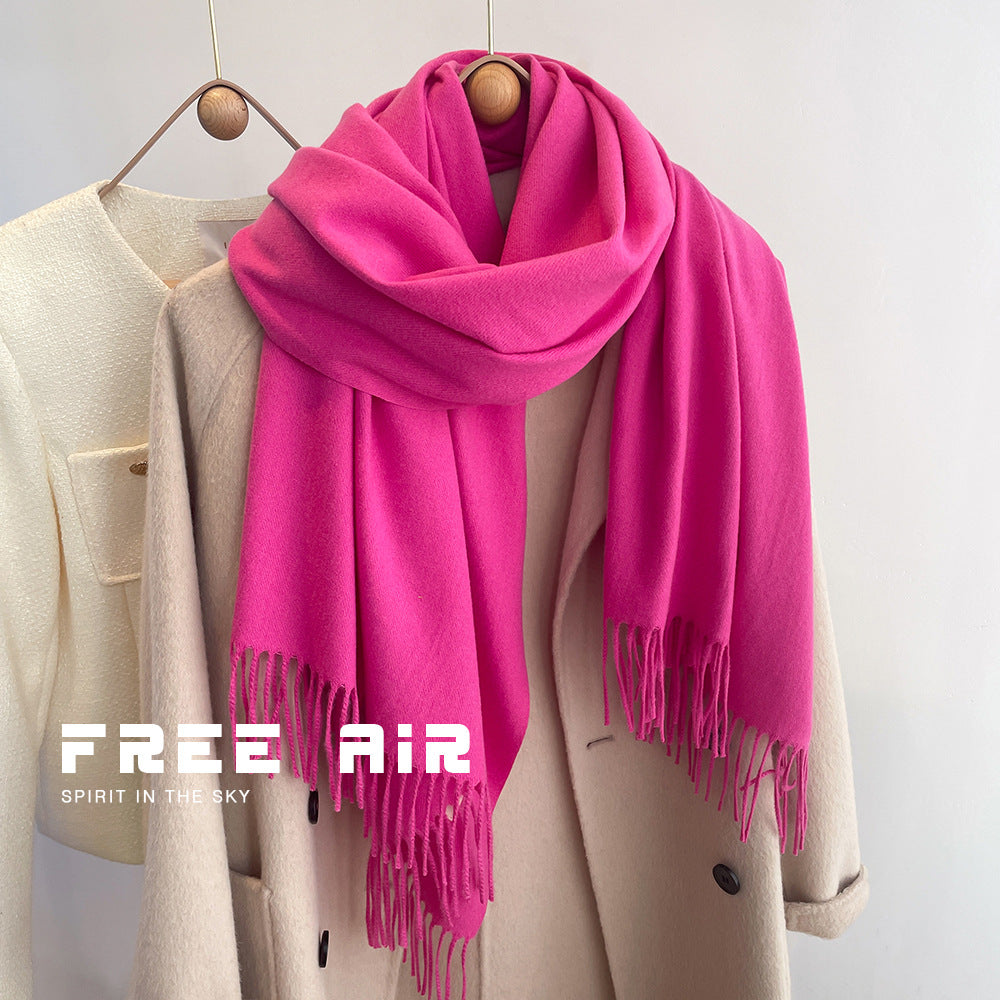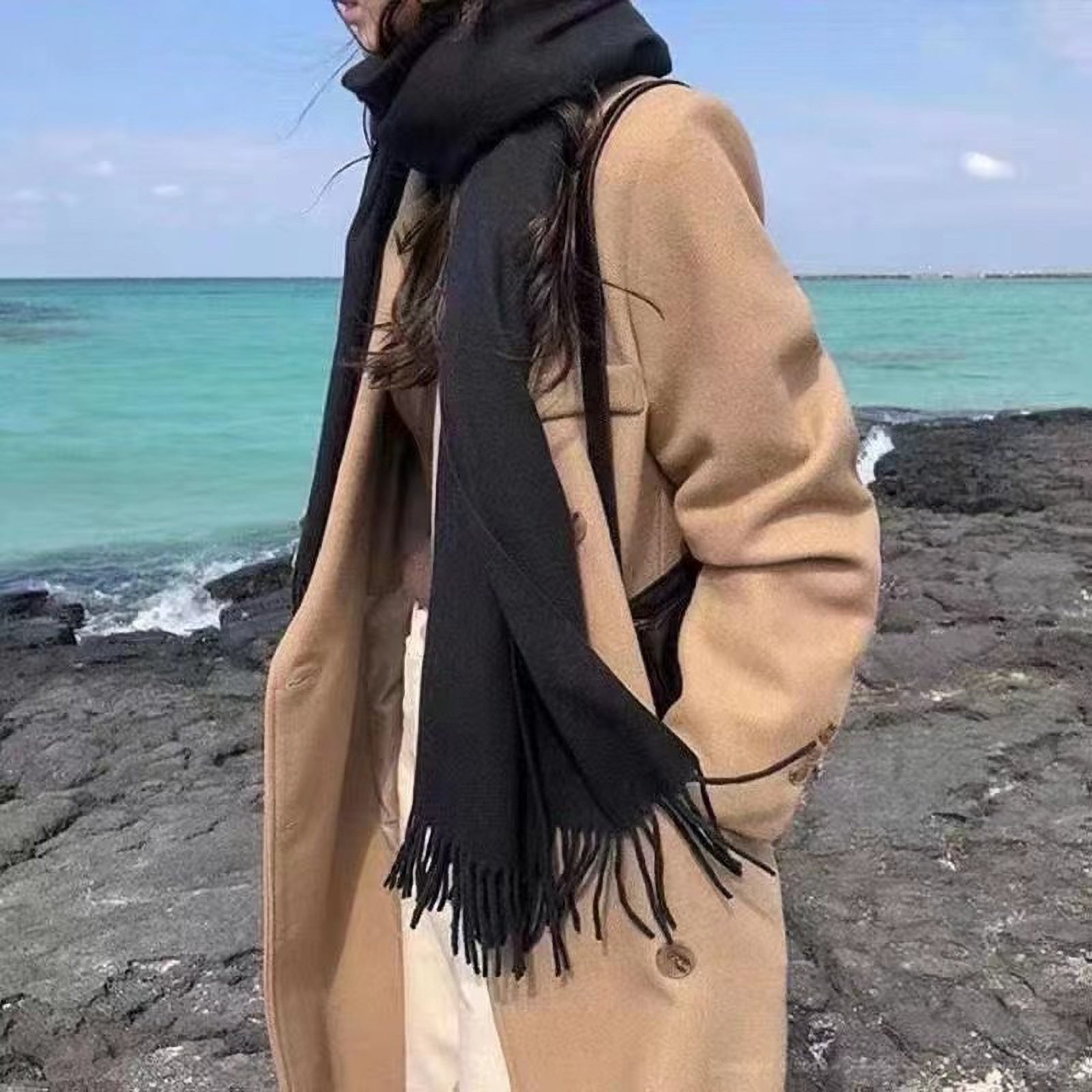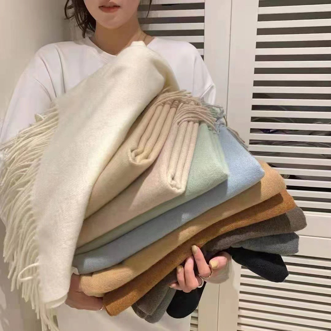 Featuring a solid color design with elegant tassels, this scarf combines classic simplicity with modern Korean style. Its long dual-use design allows it to be worn as a neck scarf or a shawl, giving you multiple styling options for daily wear, outdoor activities, or casual gatherings.