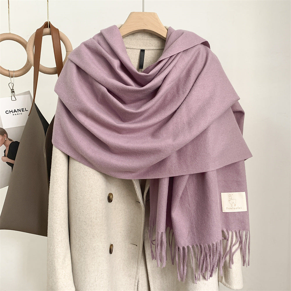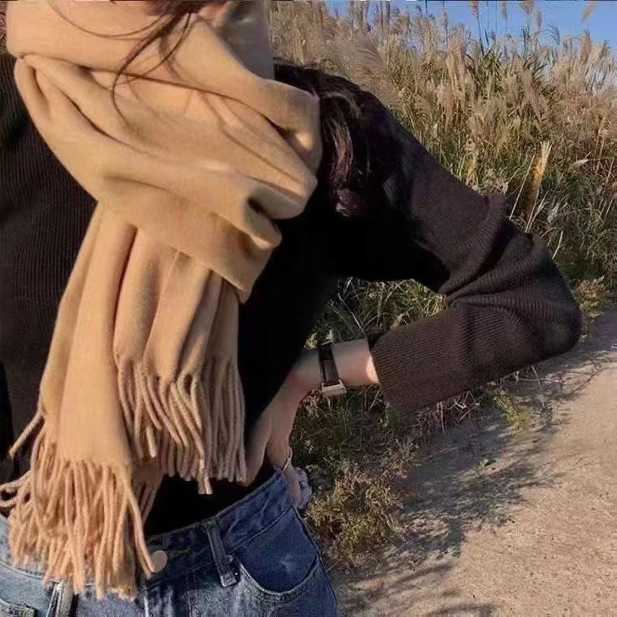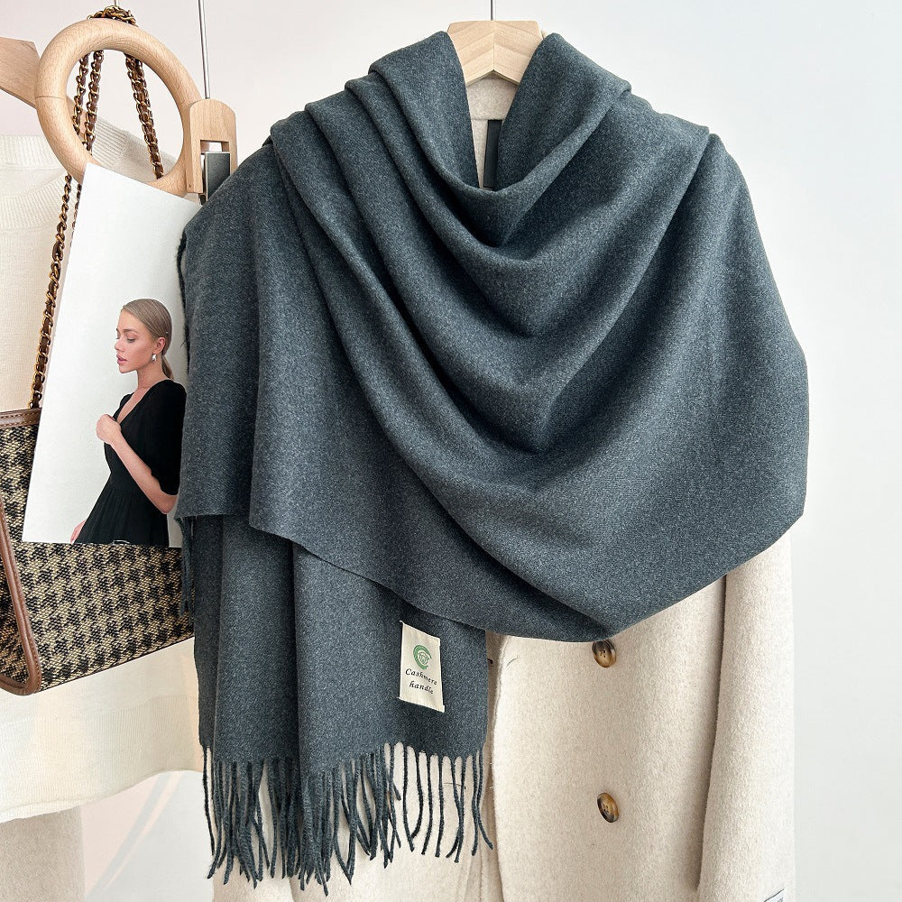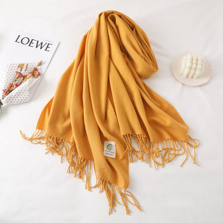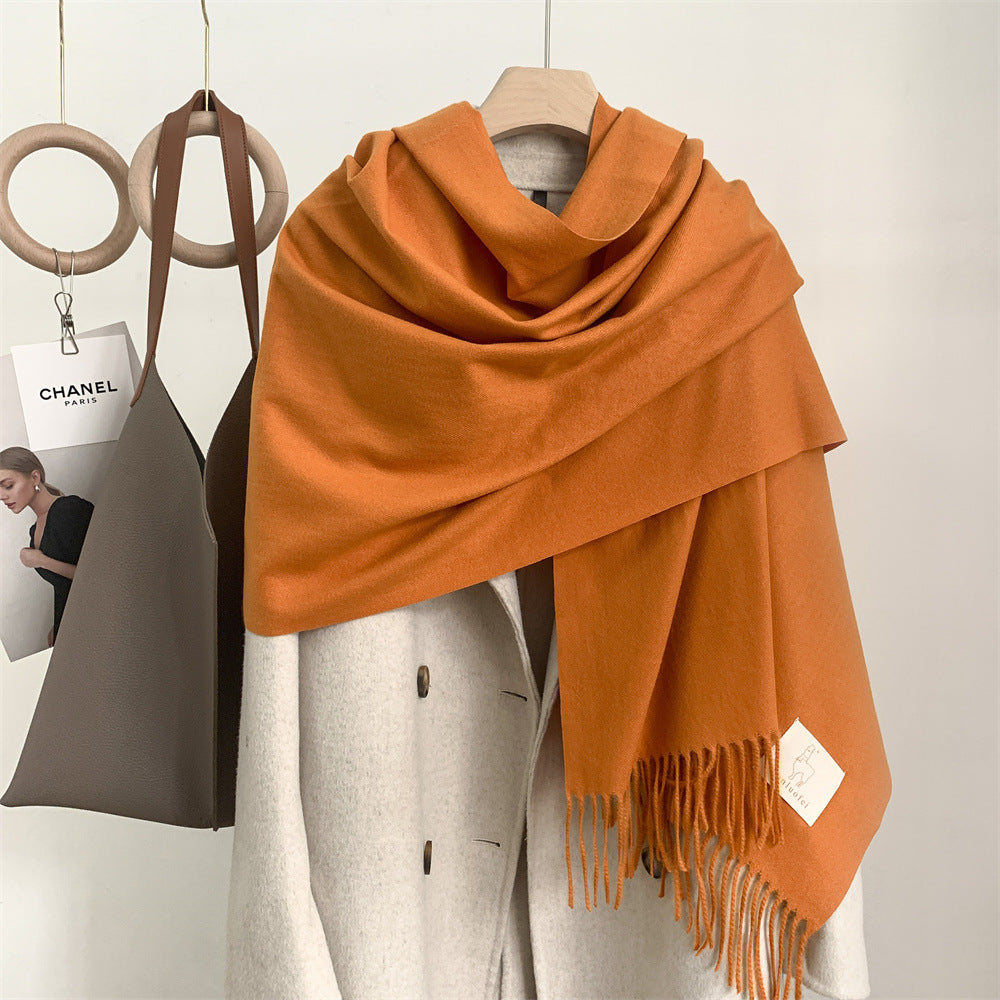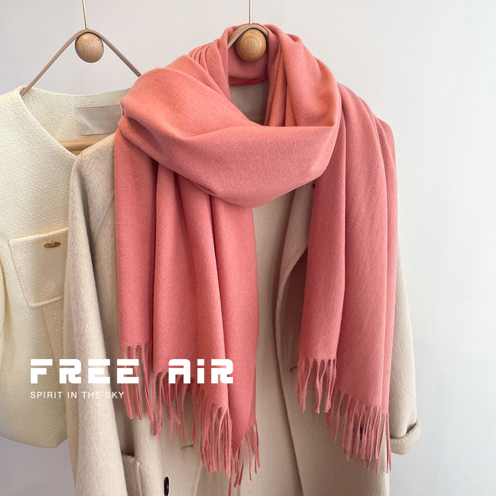 Featuring a solid color design with elegant tassels, this scarf combines classic simplicity with modern Korean style. Its long dual-use design allows it to be worn as a neck scarf or a shawl, giving you multiple styling options for daily wear, outdoor activities, or casual gatherings.