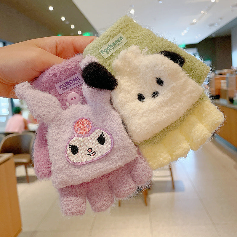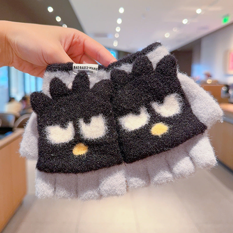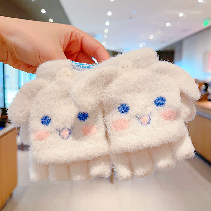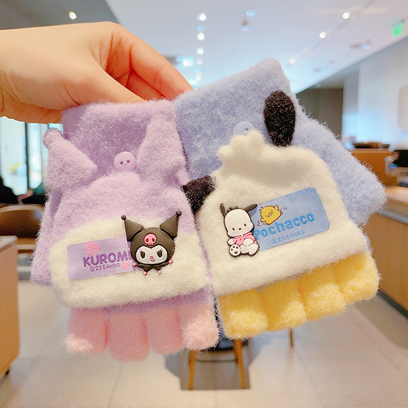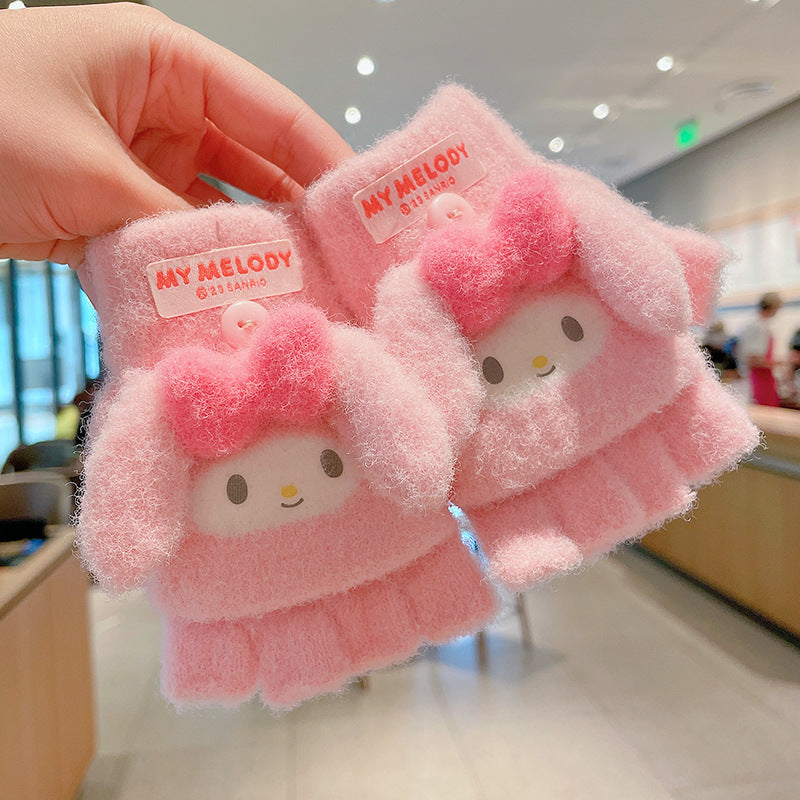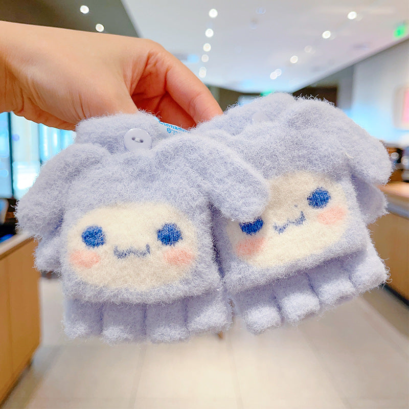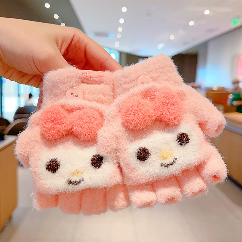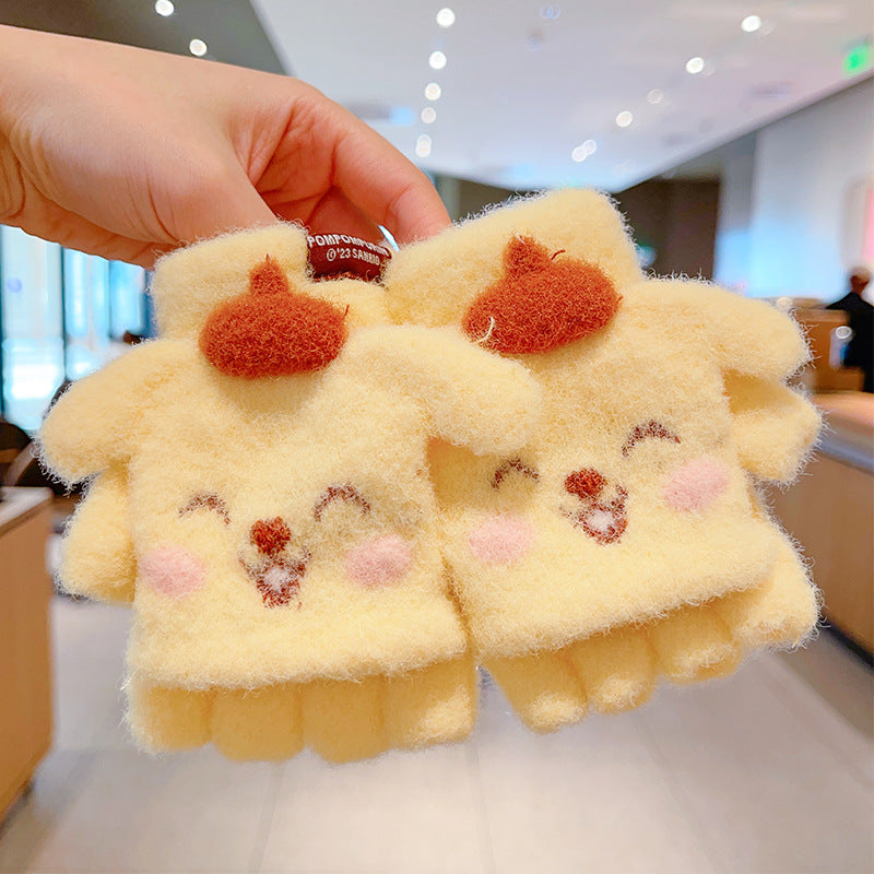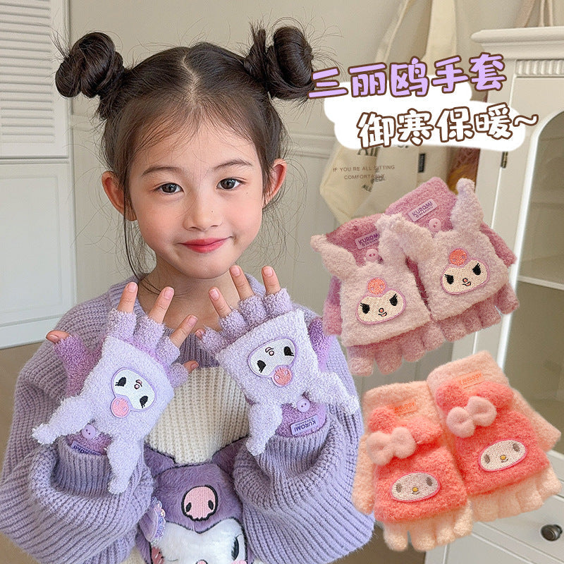 Kulomi Girls’ Winter Flip Gloves 2024 Half-Finger Warm Gloves