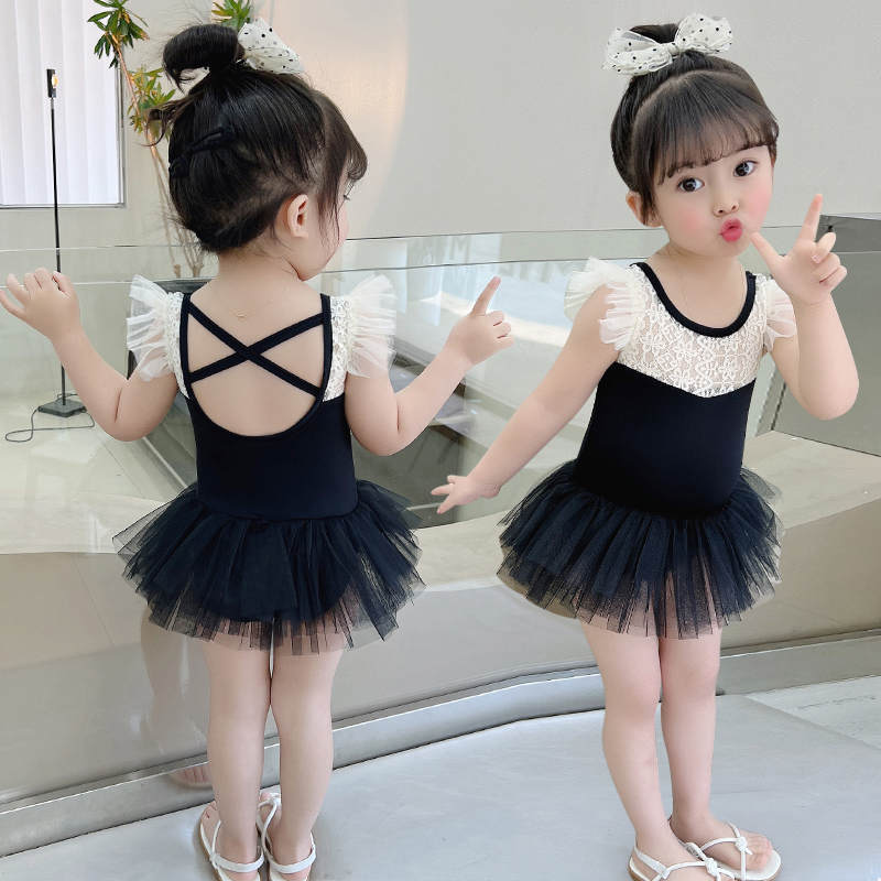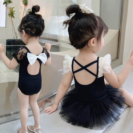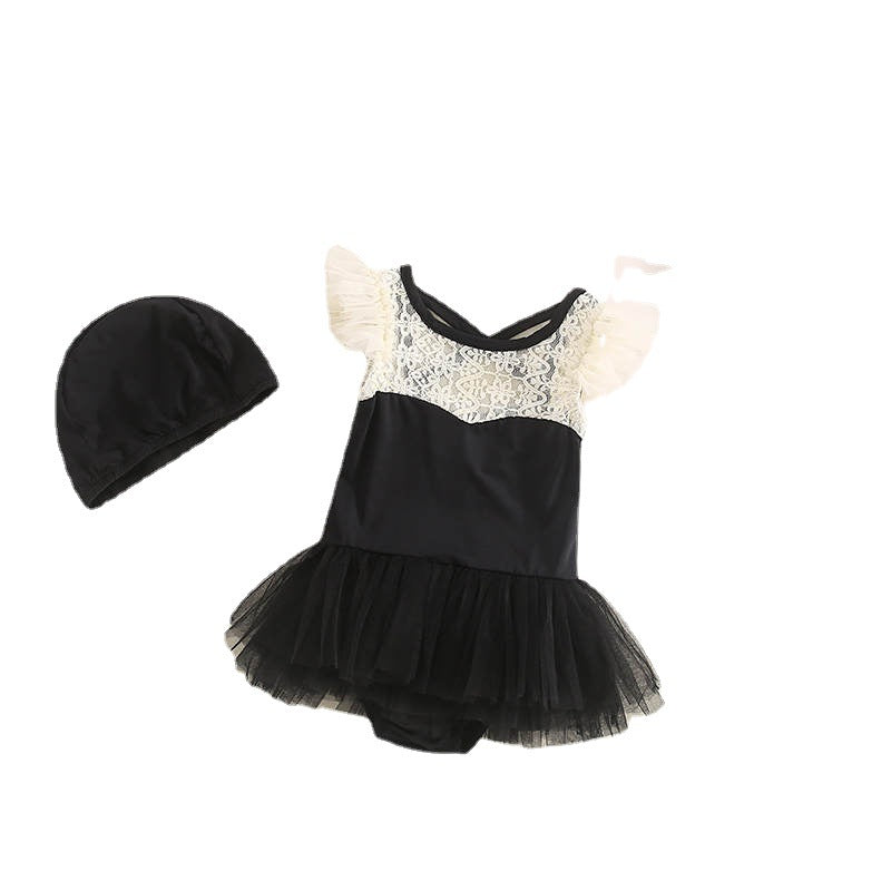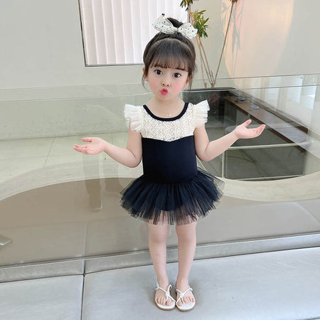 🩱 One-piece design with chic black lace – stylish and adorable for little fashionistas!