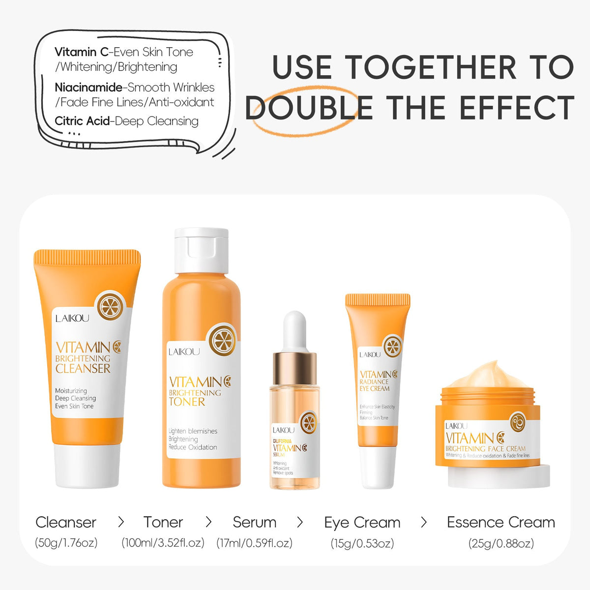 LAIKOU Vitamin C 5-Piece Skin Care Set with Eye Cream