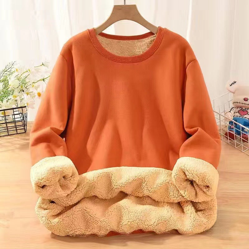 Conquer the cold with this lamb fleece wool-lined sweatshirt, crafted for men who value both style and warmth. ❄️ This hoodless pullover features premium fleece lining, thick material, and a simple solid color design, perfect for chilly autumn and winter days.