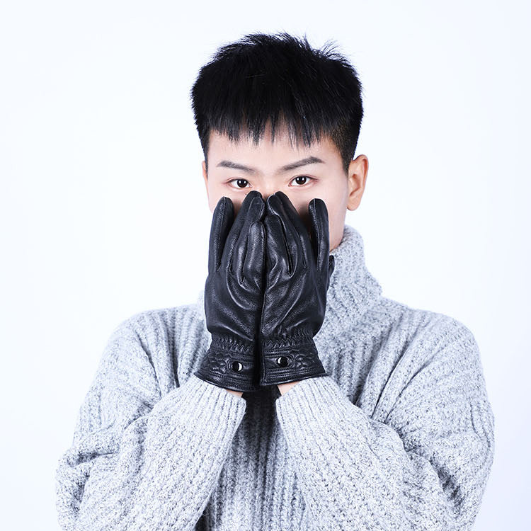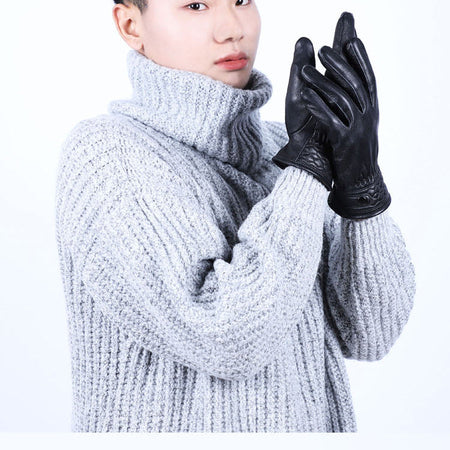 Men’s Fleece-Lined Leather Gloves – Winter Warm Windproof Riding