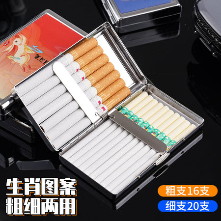 Leather & Metal Portable Cigarette Box 14/20-Pack Dual-Use