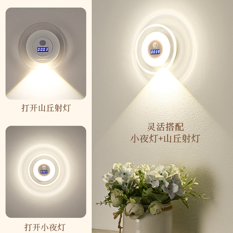 šš Combine the functionality of a wall clock, spotlight, and nightlight into one. This LED human-sensor light doubles as a remote-controlled alarm clock with built-in spotlight for late-night trips.
