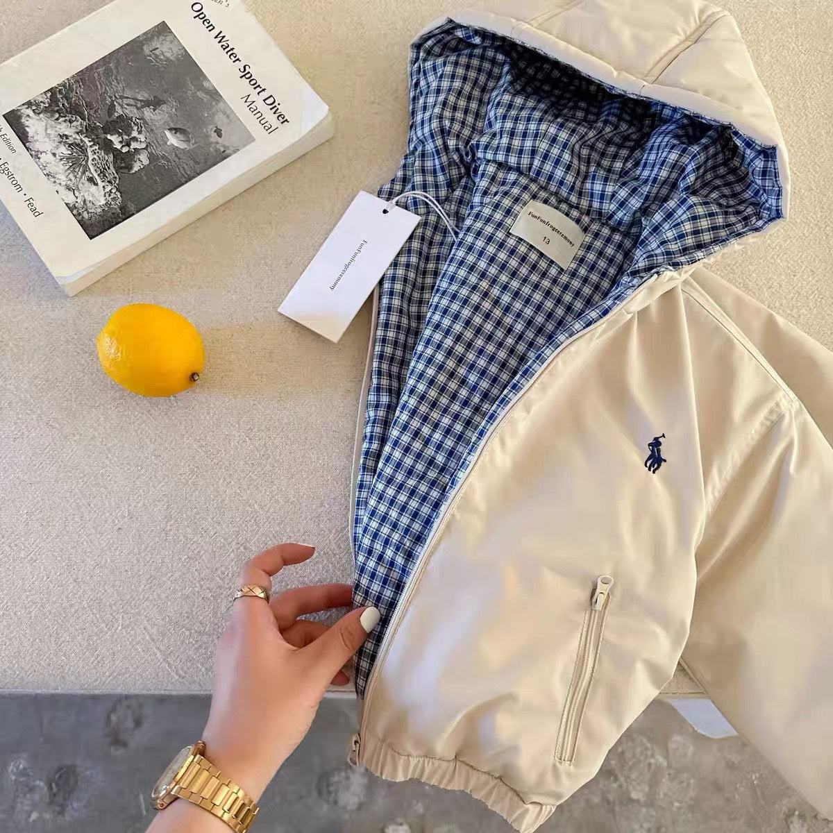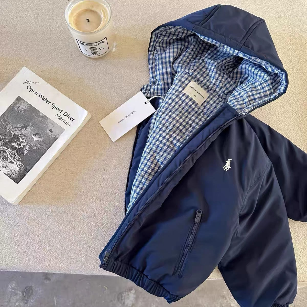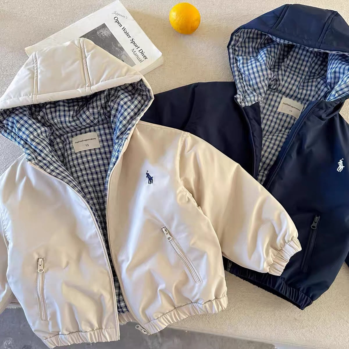 When not in use, the jacket can be neatly folded and stored in wardrobes or shelves alongside children’s clothing and home décor items like decorative vases, helping keep your home tidy and organized 🏡.