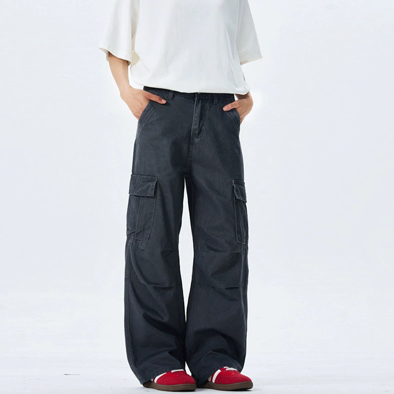 Channel effortless street style with these vintage washed cargo pants for men, designed with a high street aesthetic. The old washed effect and wide-leg silhouette give them a true retro edge.