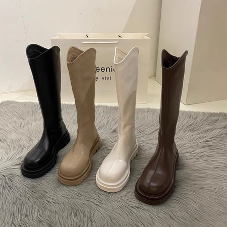 These high-top boots adapt to your style—pair with dresses for elegance or jeans for everyday chic. The stretch fit flatters the legs, while the heel options give you both comfort and height.