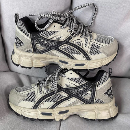 These dad-style sneakers are more than just a trend – they're trail-ready! Featuring a soft, breathable mesh upper that keeps your feet cool even in intense action, and a thick, shock-absorbing sole that cushions every step, they're perfect for hiking, running, or daily walks 🏞️🛤️.