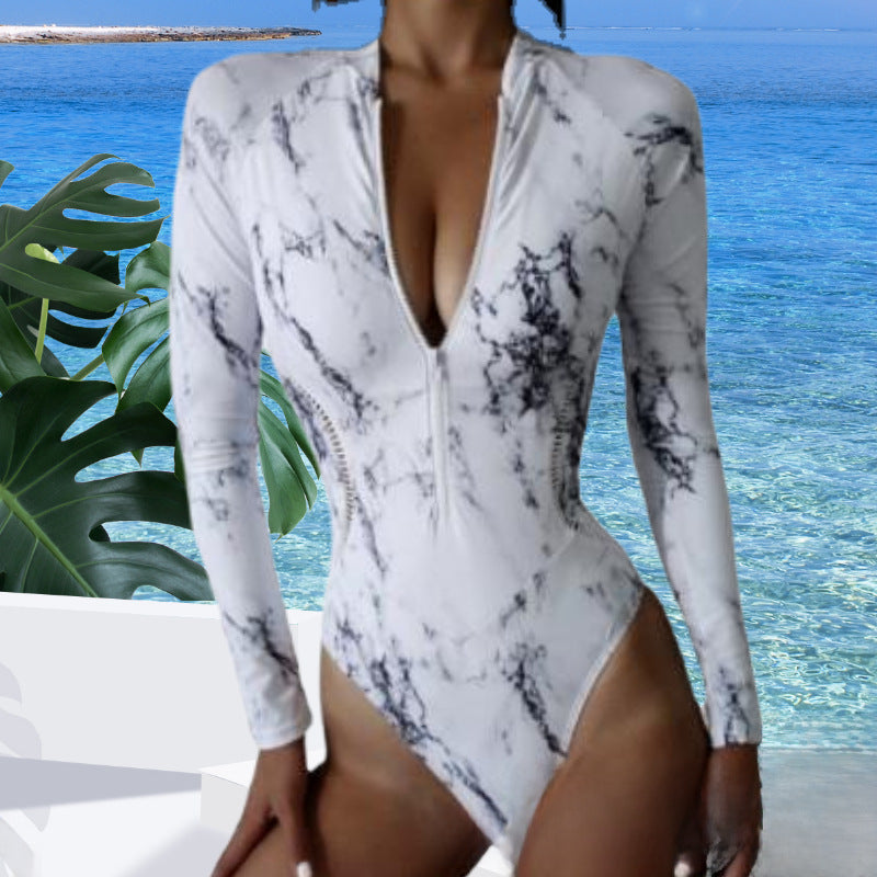Make waves this season with the 2023 Long-Sleeved Surfing Swimsuit for Women, combining bold style with high-performance function. This one-piece swimsuit features a sleek front zipper, eye-catching prints, and a sexy, body-hugging fit—perfect for surfing, beach days, or poolside lounging.
