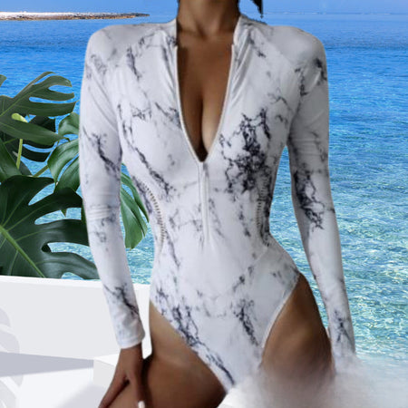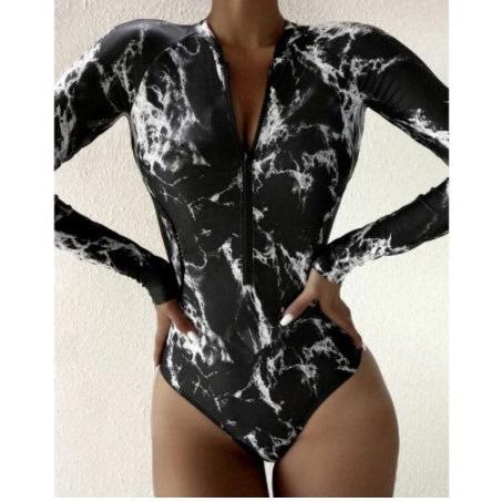 Women’s Long-Sleeved Zipper One-Piece Swimsuit