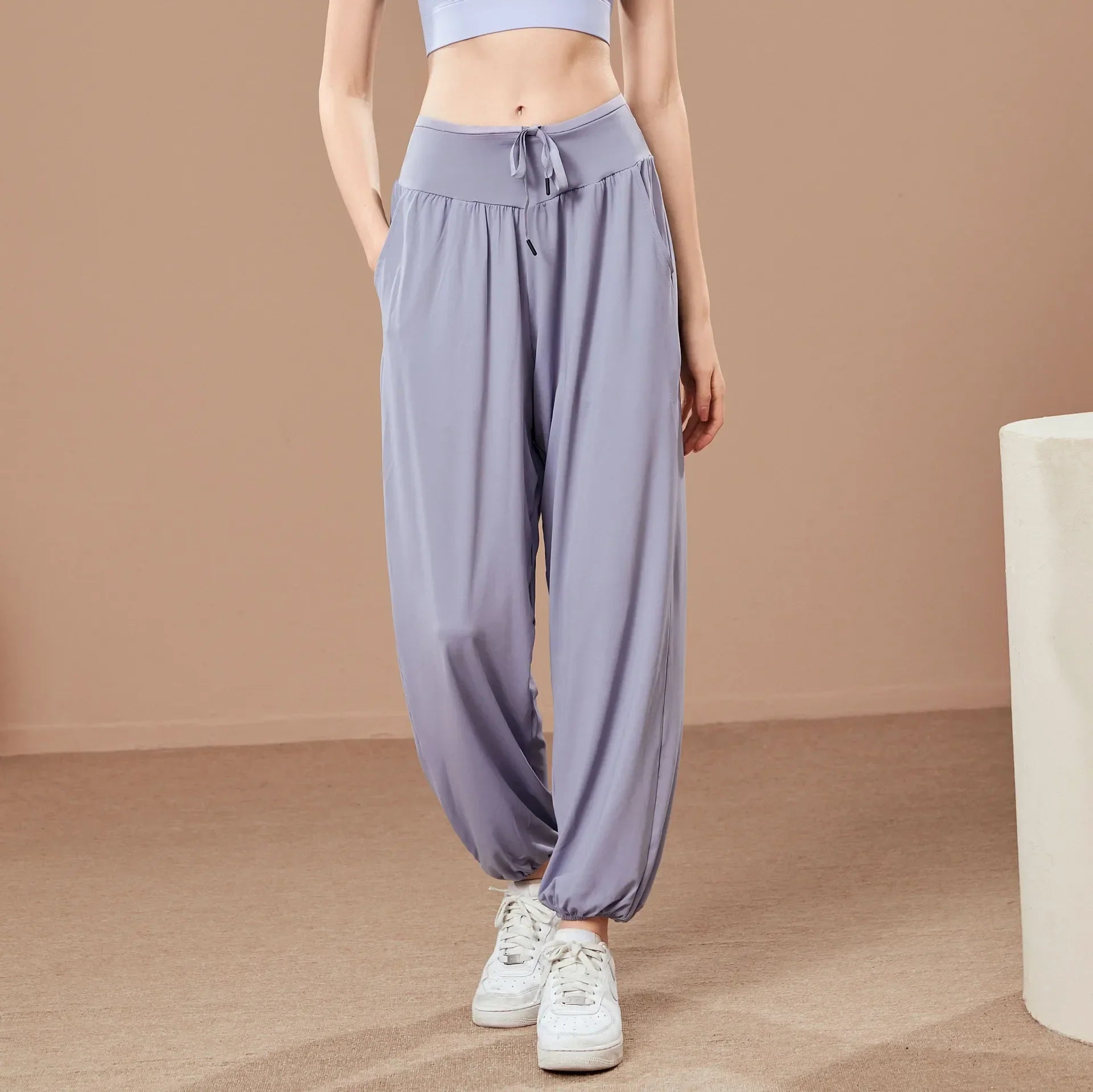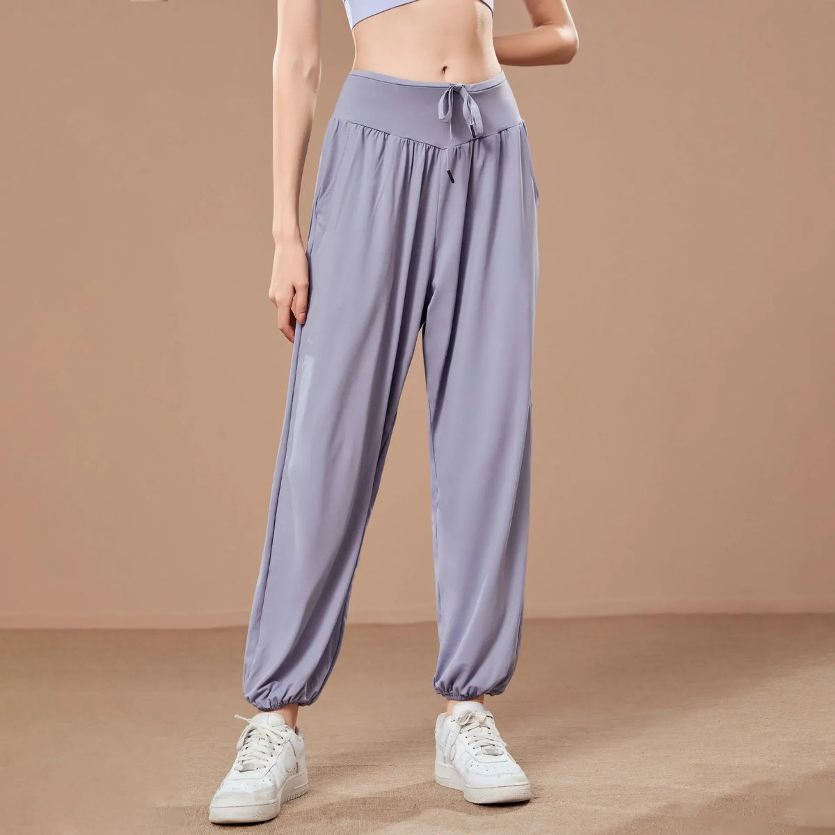 Whether you're heading to the gym or out for a walk, these thin fitness pants provide just the right amount of flow and stretch. The relaxed design flatters your silhouette without clinging, making them perfect for warm summer workouts or casual days.