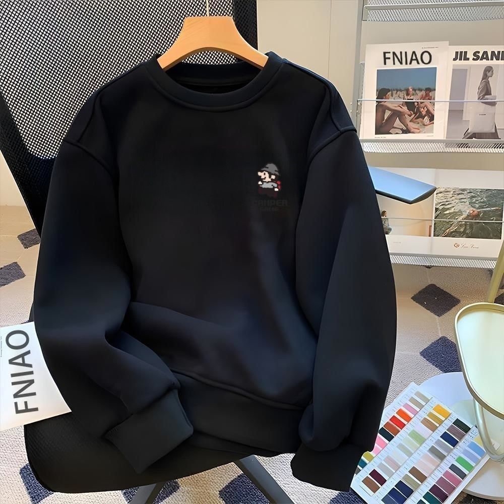 The pullover design features a classic crew neck and long sleeves, delivering a clean, minimalist look that suits various wardrobe combinations. Its loose, relaxed fit ensures comfort and freedom of movement, appealing to men who favor practical yet fashionable daily wear 👕👖.
