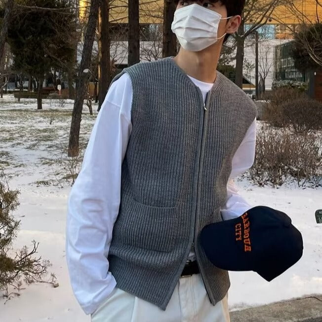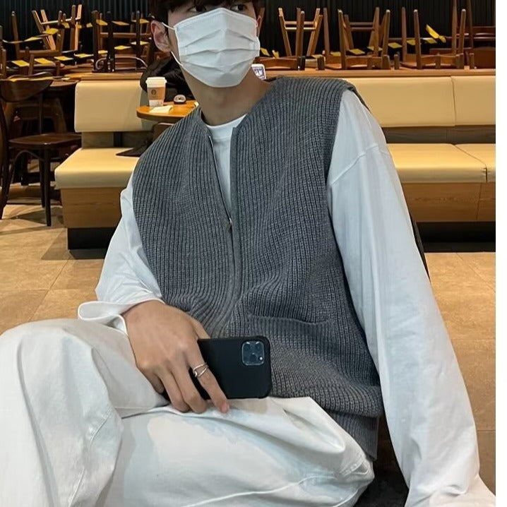 Men’s Sleeveless Sweater Vest – Japanese Loose Zipper Waistcoat