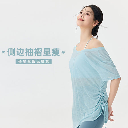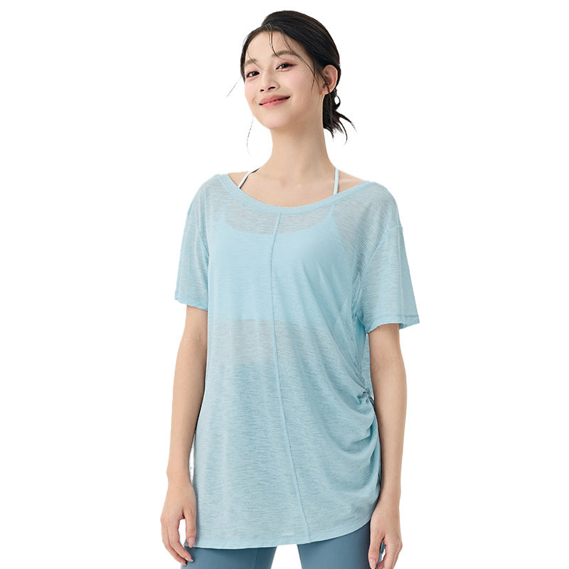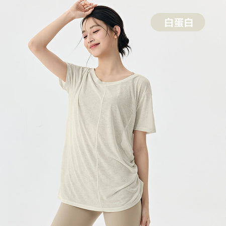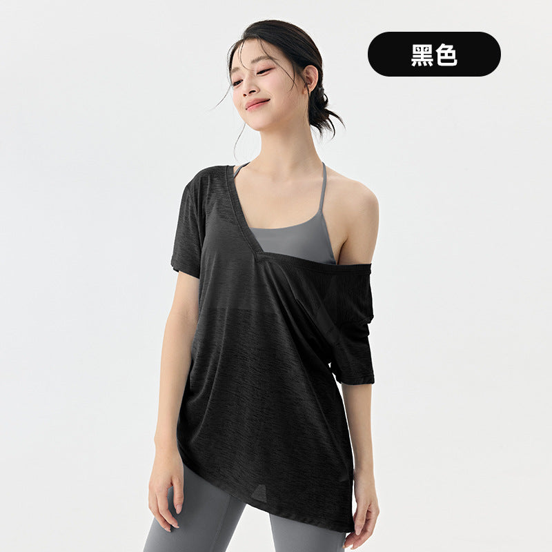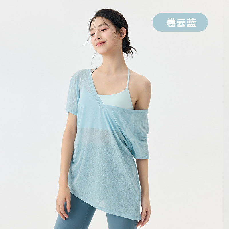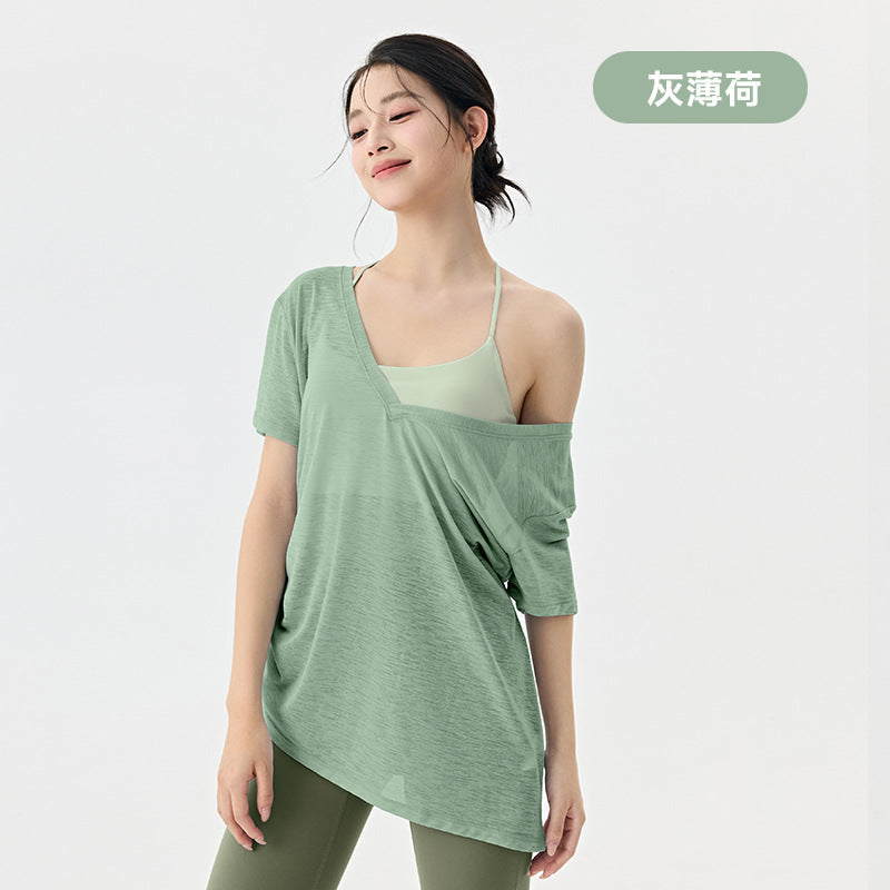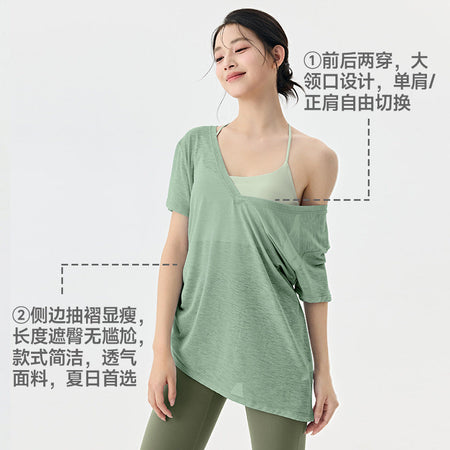 Key Features: Loose fit & breathable | Slightly see-through | Large neckline | Short sleeves | 2025 new summer style | Relaxed lazy-chic yoga top