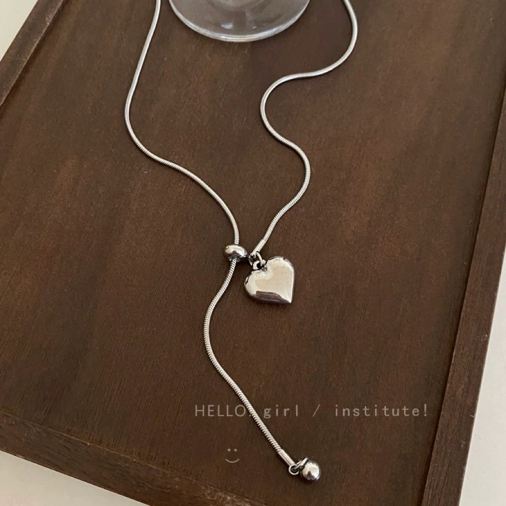 This necklace blends simplicity with sophistication, making it an easy everyday favorite. The love pendant adds a subtle romantic touch, while the long pull-out chain creates a modern layered effect. Its non-fading titanium steel ensures long-lasting shine, perfect for daily wear without worry.