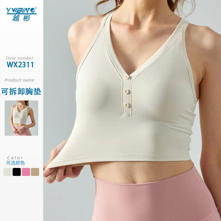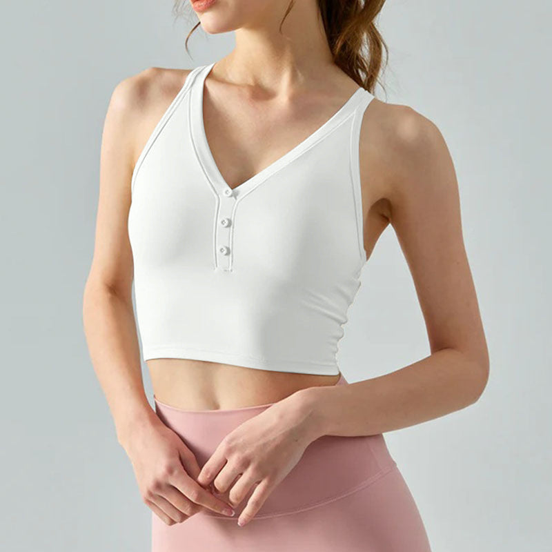 Nude V-Neck Sports Bra – Cross Back Fitness Vest