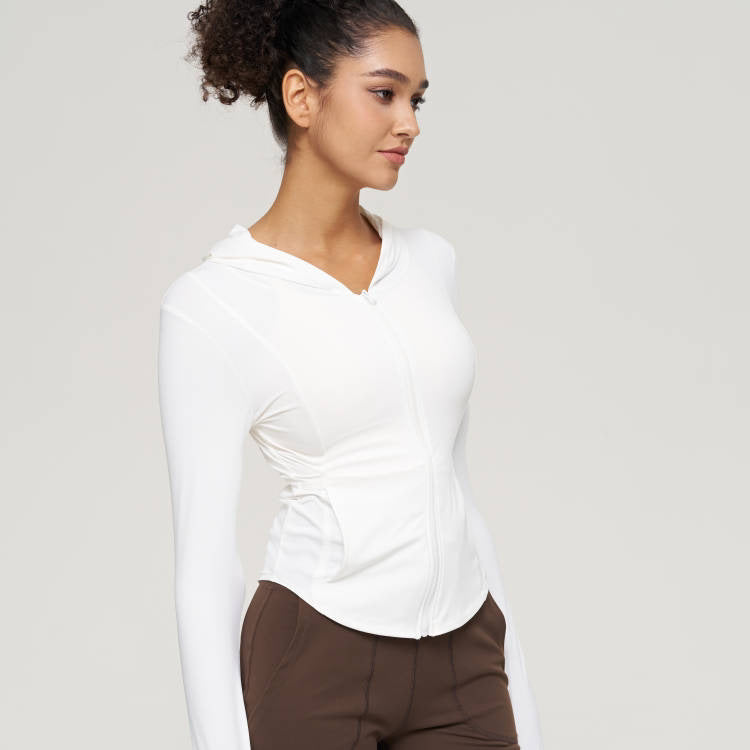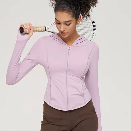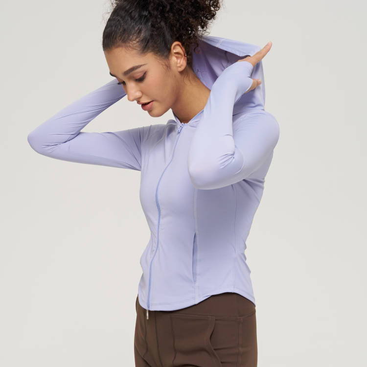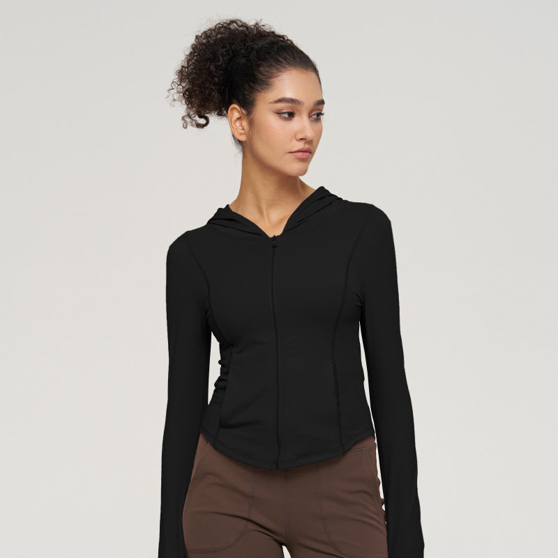 Women’s Hooded Yoga Jacket – Slim Zipper Running Sportswear