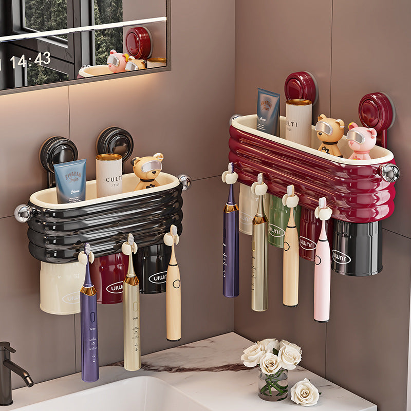 This plastic toothbrush holder with toothpaste dispenser is perfect for anyone seeking a practical and stylish bathroom organization solution. Its punch-free design ensures easy installation, while the durable material provides reliable support for daily essentials.