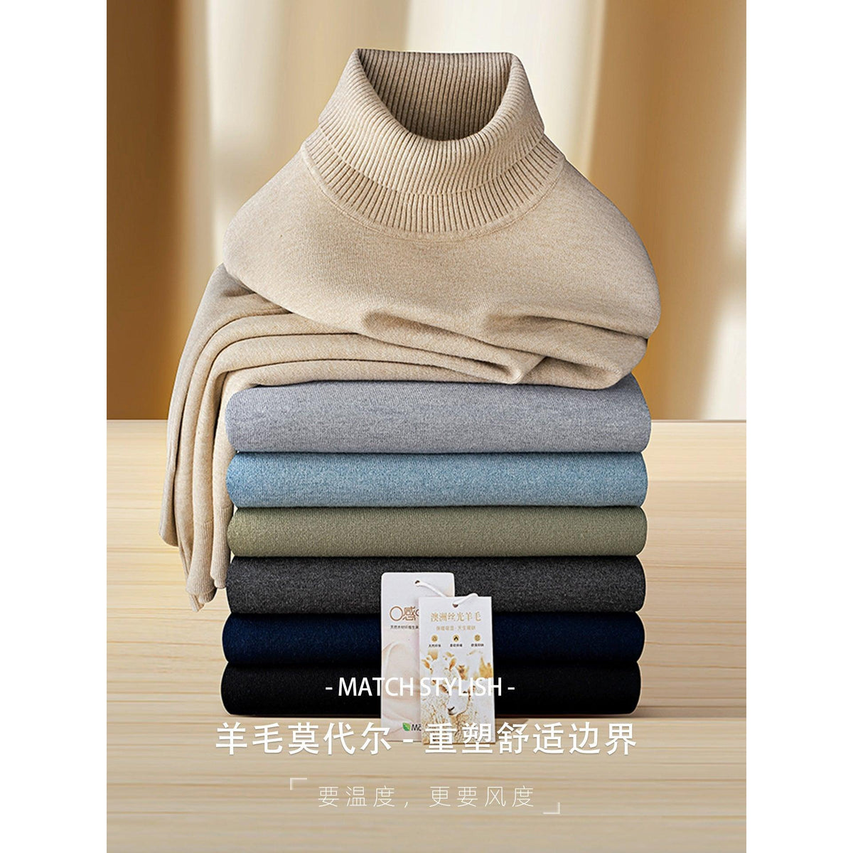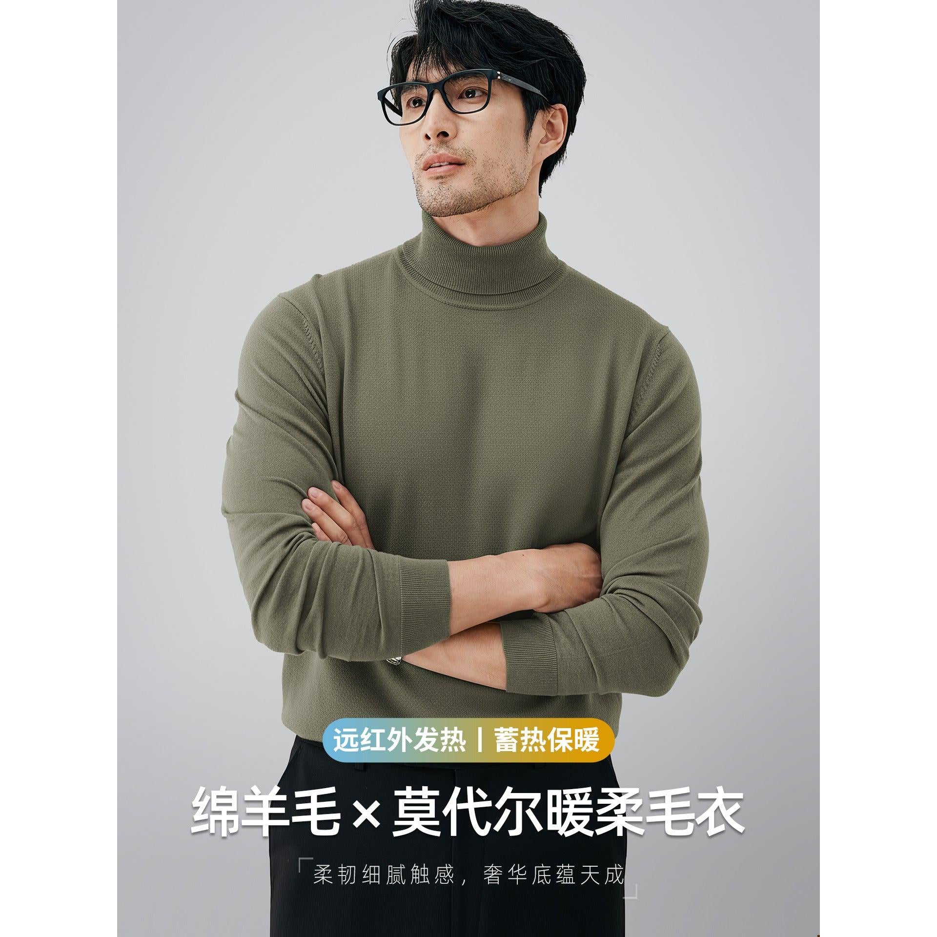 Machine Washable Wool Modal Mens Turtleneck Autumn Winter MW
