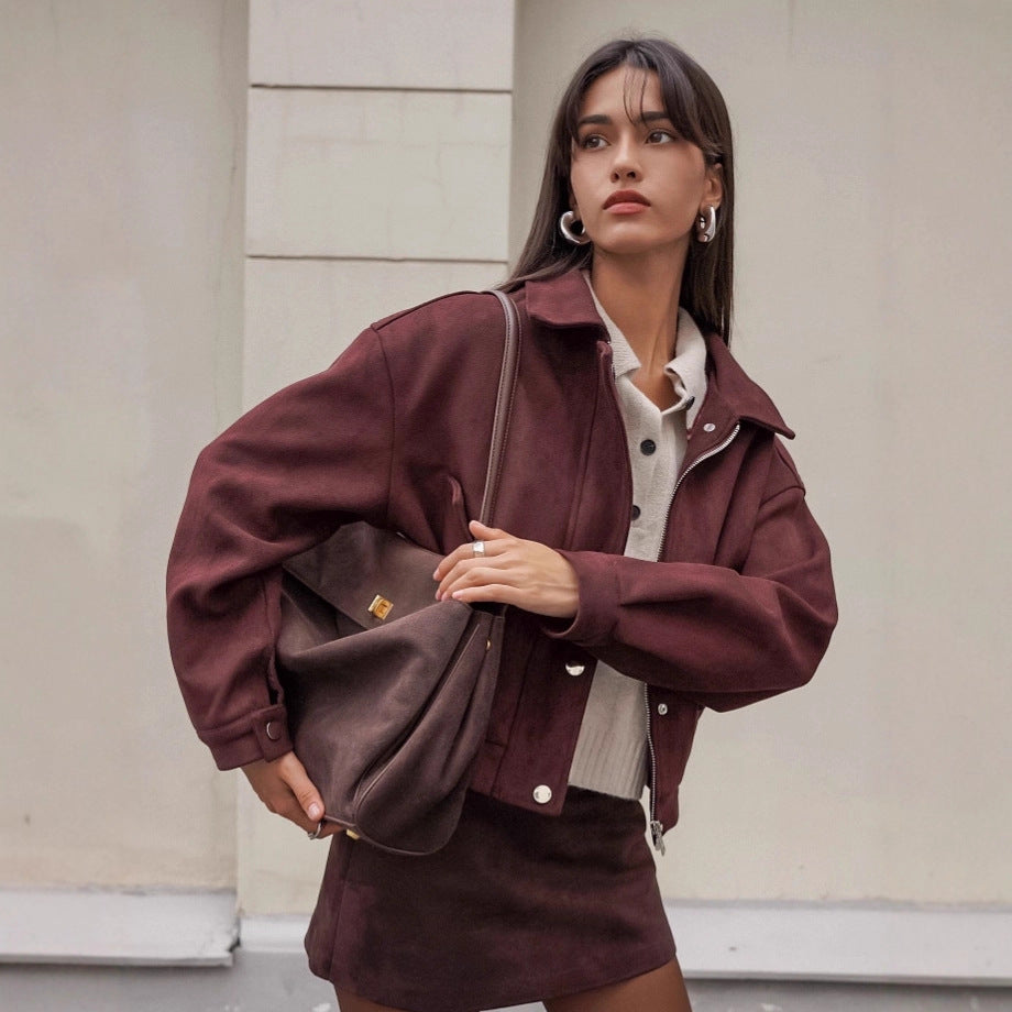 Retro Red-Brown Suede Jacket